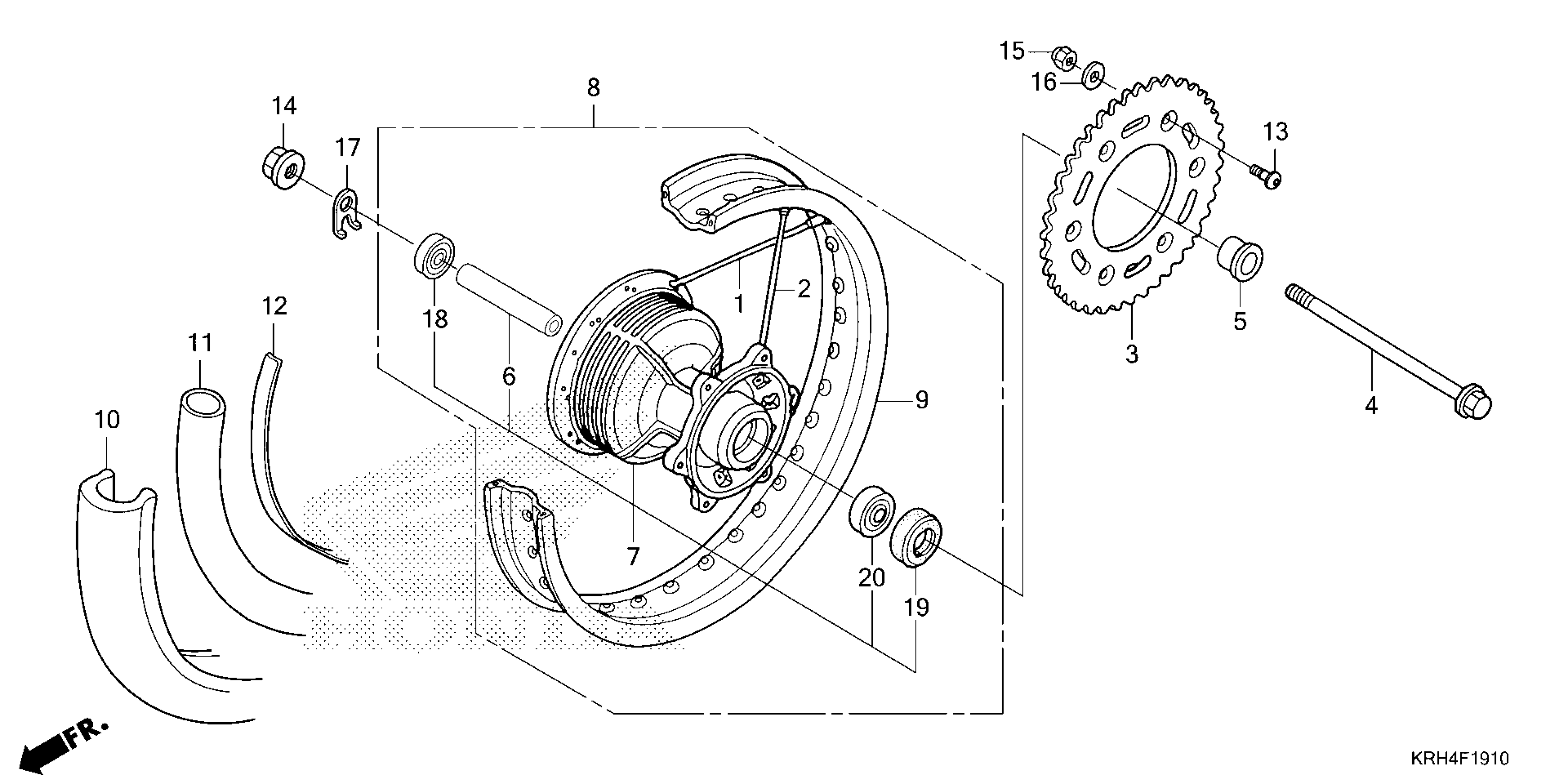 Honda XR150LE2AC (24) MOTORCYCLE, MEX, VIN# 3H1KD131-RD100001 TO 3H1KD131-RD199999 REAR WHEEL Diagram