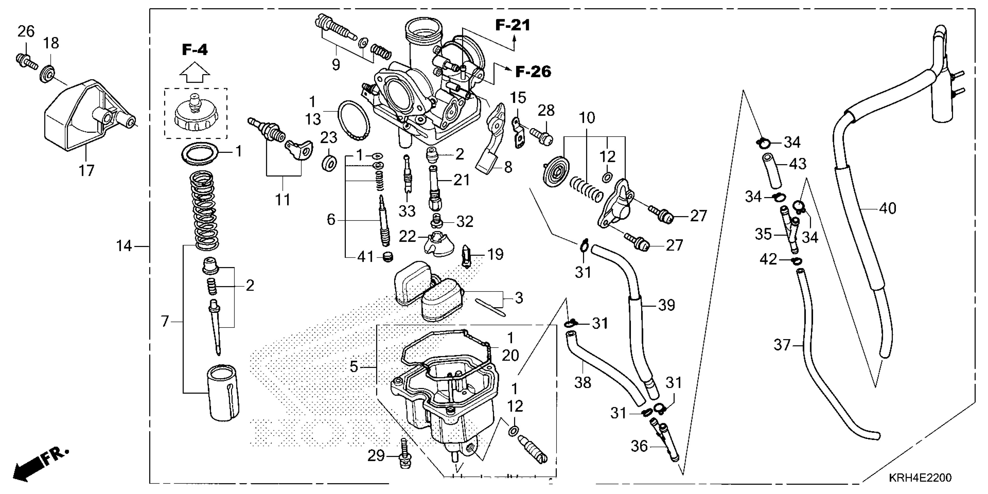 Honda XR150LEAC (25) MOTORCYCLE, MEX, VIN# 3H1KD131-SD200001 TO 3H1KD131-SD299999 CARBURETOR Diagram