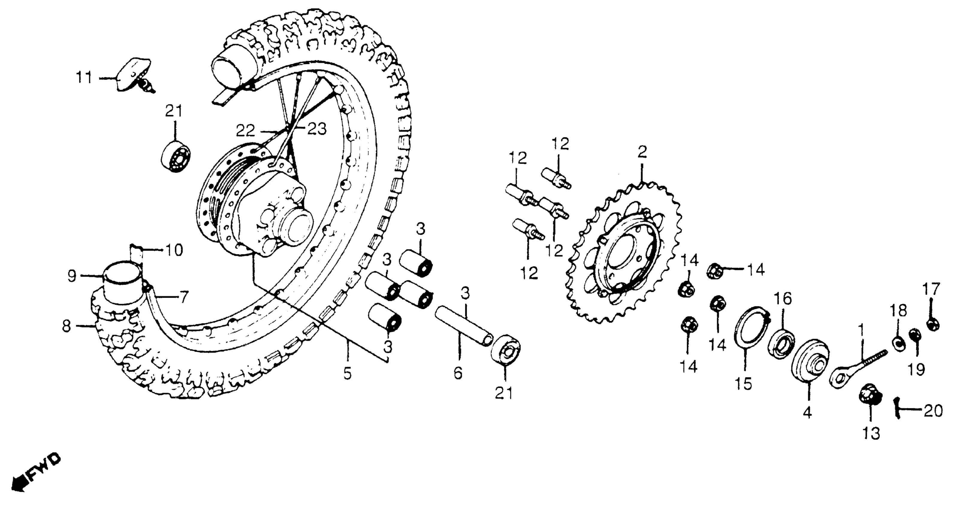 Honda XR185A (79) MOTORCYCLE, JPN, VIN# ME02-5000061 REAR WHEEL Diagram