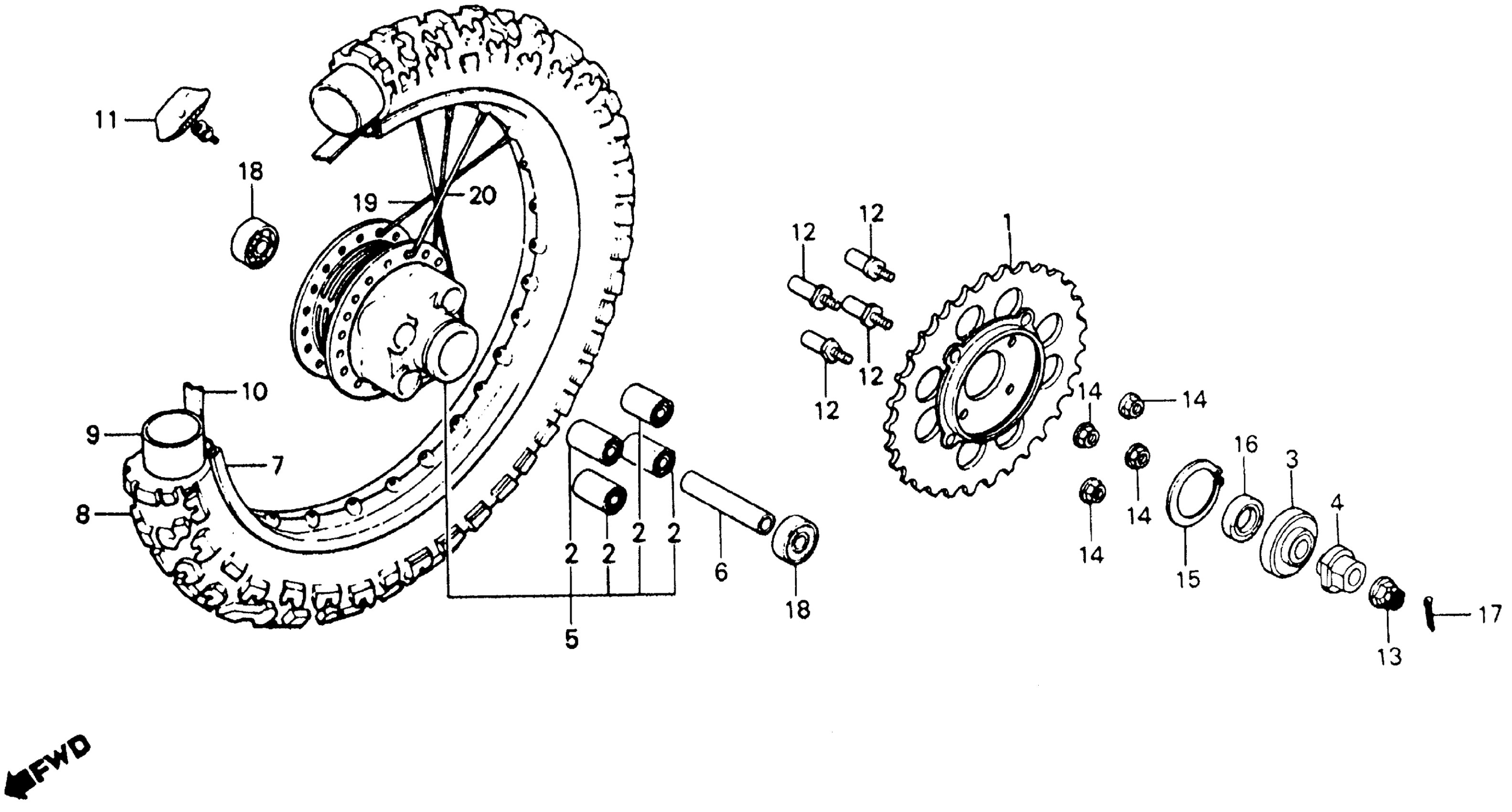 Honda XR200A (84) MOTORCYCLE, JPN, VIN# JH2ME020-EK500001 REAR WHEEL Diagram