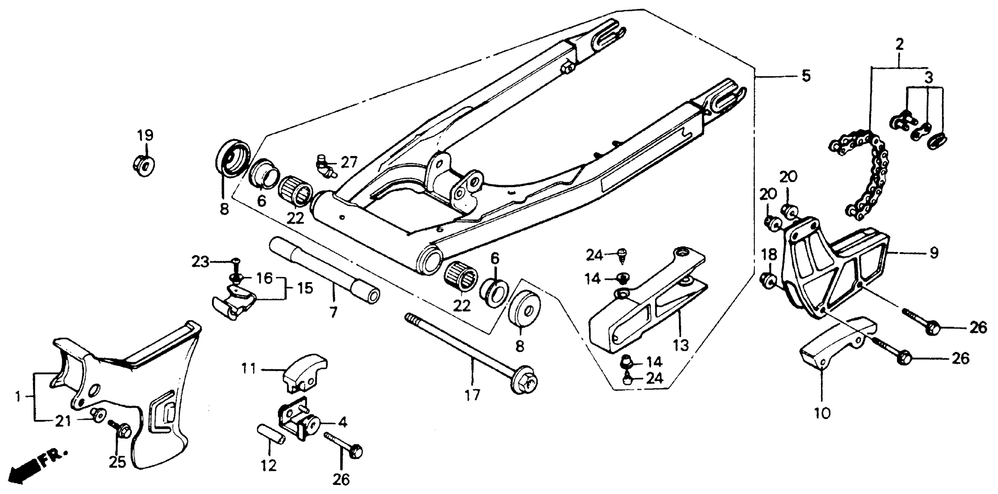 Honda XR200RA (93) MOTORCYCLE, JPN, VIN# JH2ME050-PK700001 SWINGARM Diagram