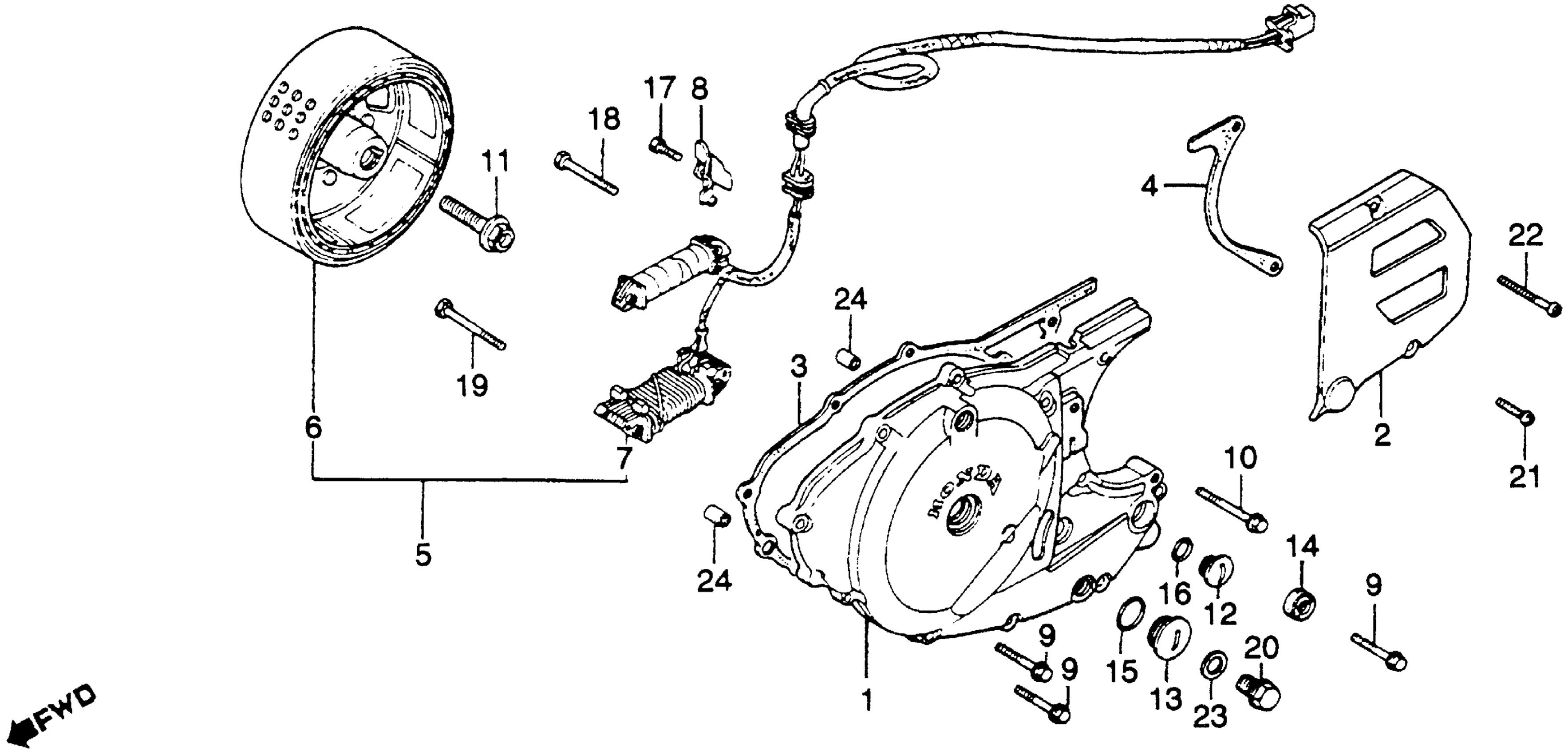 Honda XR250A (79) MOTORCYCLE, JPN, VIN# ME01-5000032 LEFT CRANKCASE COVER + ALTERNATOR Diagram