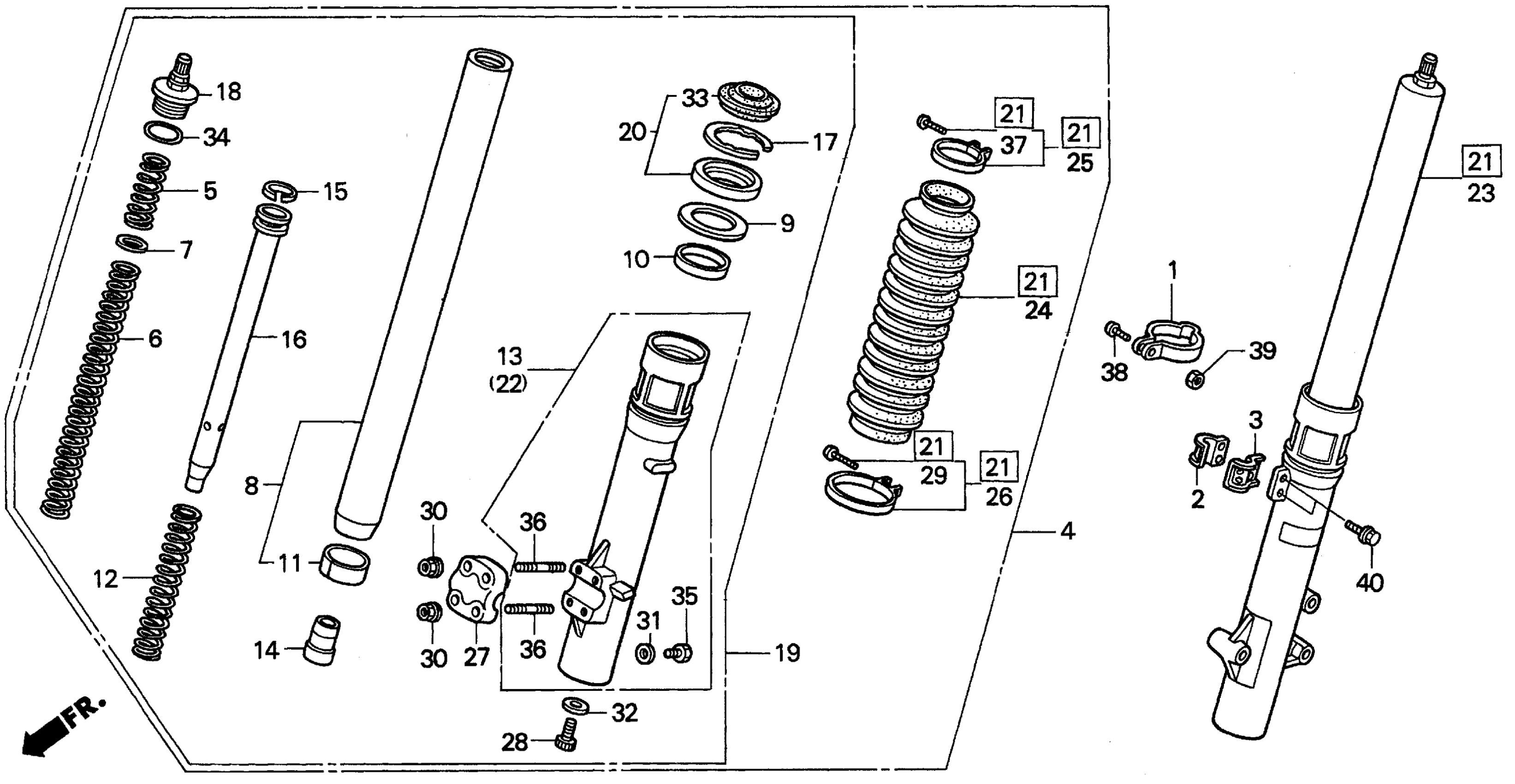 Honda XR250LA (96) MOTORCYCLE, JPN, VIN# JH2MD220-TM500001 FRONT FORK Diagram