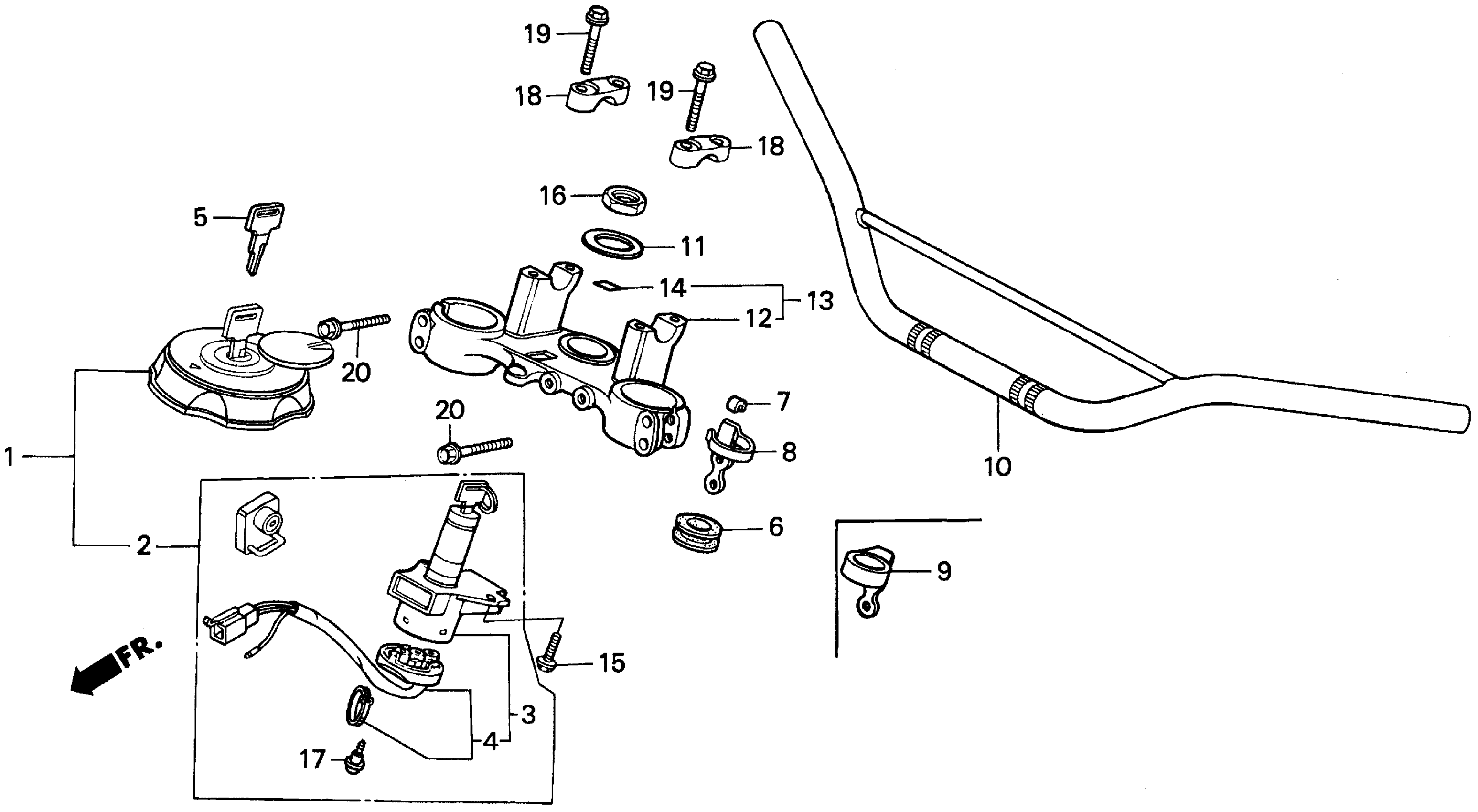 Honda XR250LAC (96) MOTORCYCLE, JPN, VIN# JH2MD221-TM500001 HANDLEBAR Diagram