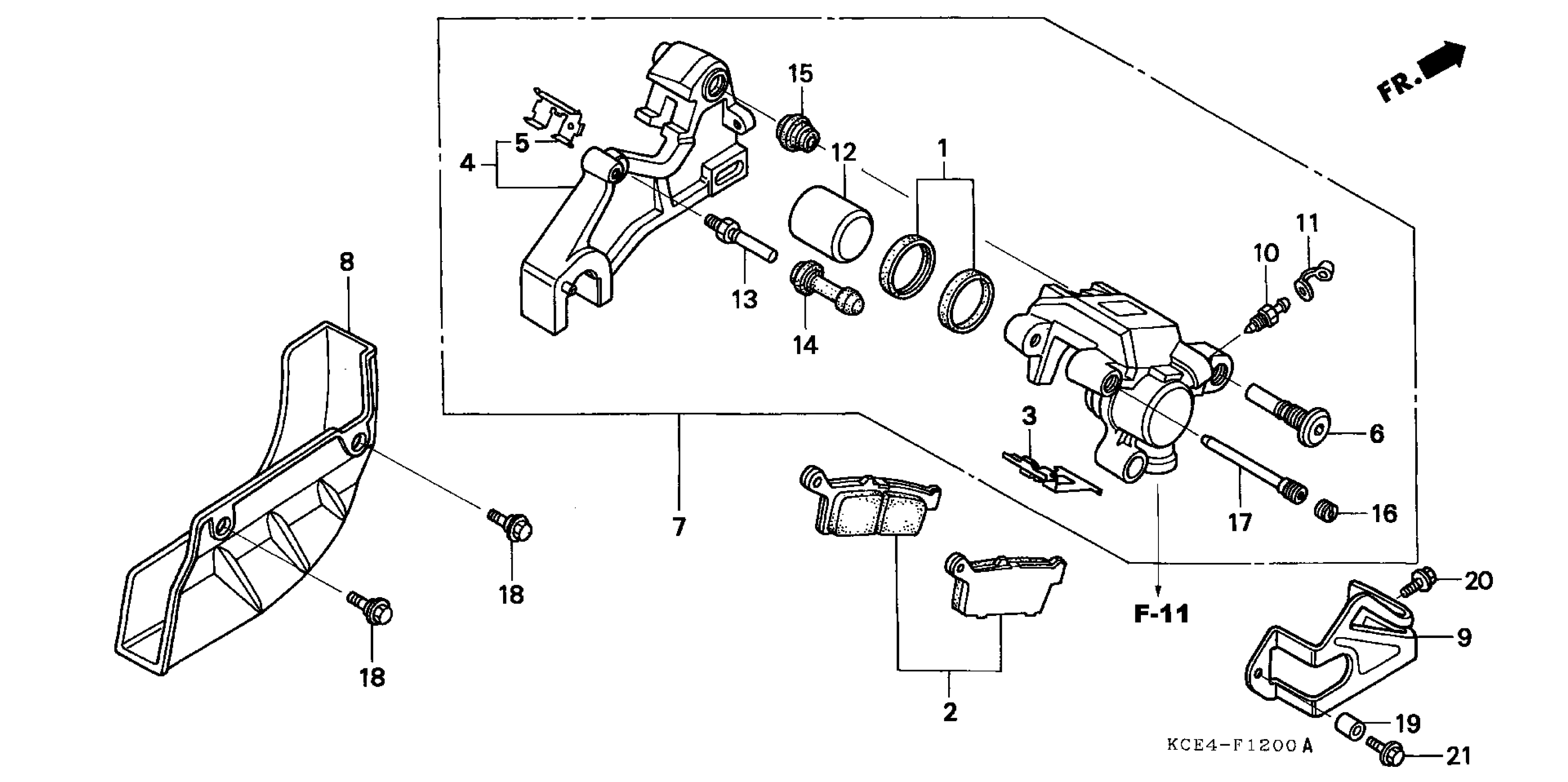 Honda XR250RA (03) MOTORCYCLE, JPN, VIN# JH2ME080-3M800001 REAR BRAKE CALIPER Diagram