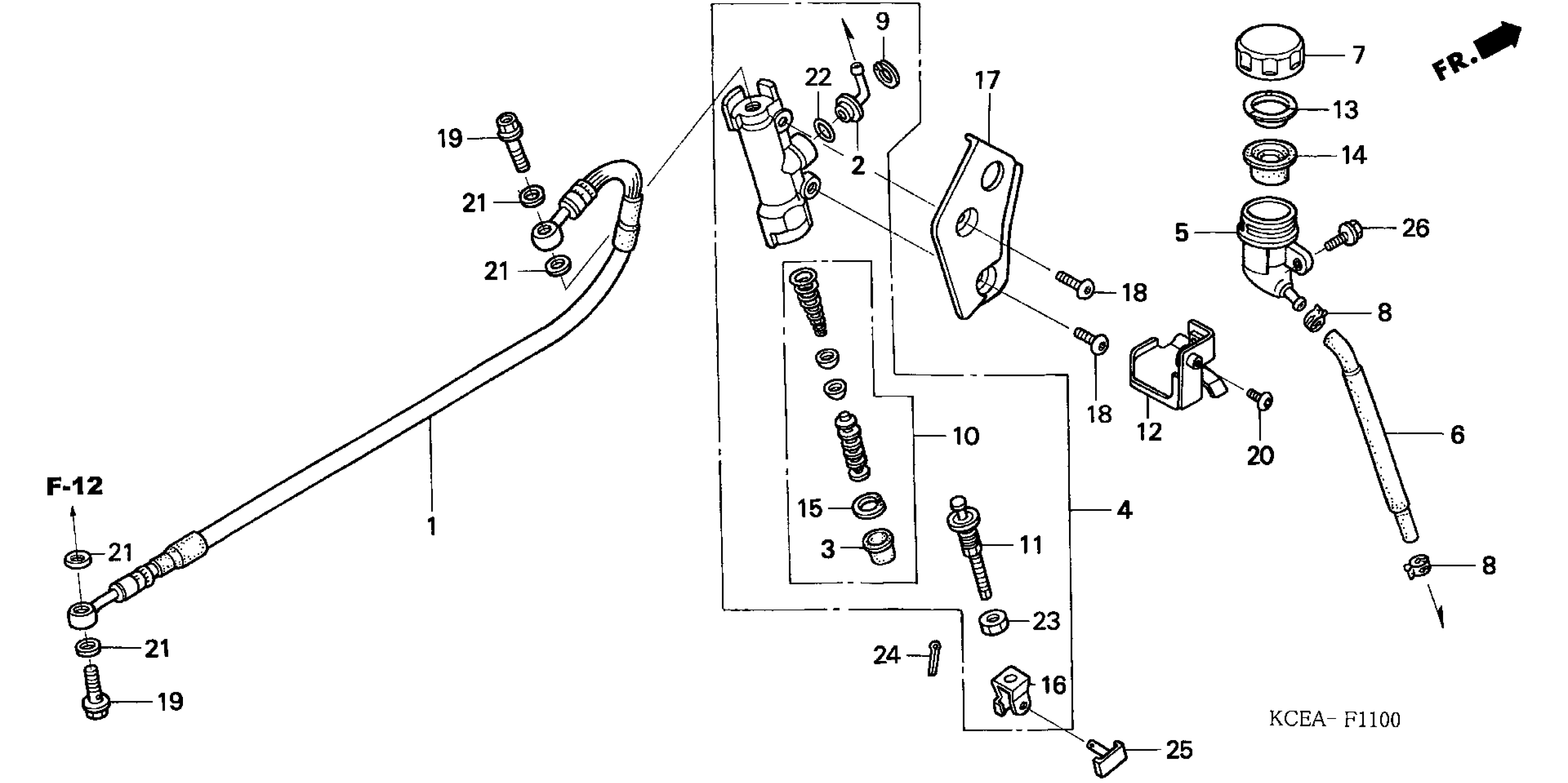 Honda XR250RA (04) MOTORCYCLE, JPN, VIN# JH2ME080-4K900001 TO JH2ME080-4K959999 REAR BRAKE MASTER CYLINDER Diagram