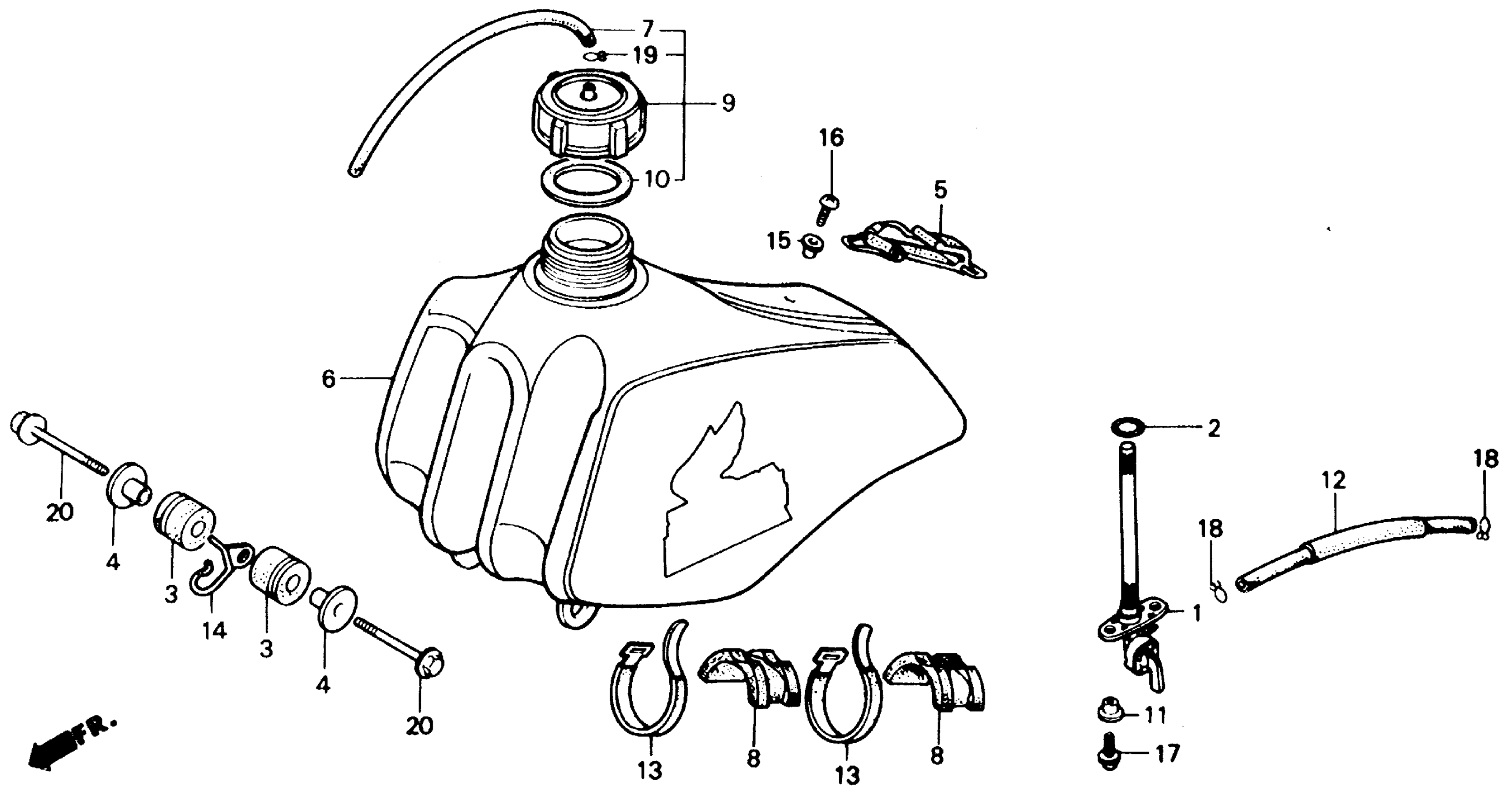 Honda XR250RA (85) MOTORCYCLE, JPN, VIN# JH2ME060-FK100003 TO JH2ME060-FK104453 FUEL TANK 84-85 Diagram