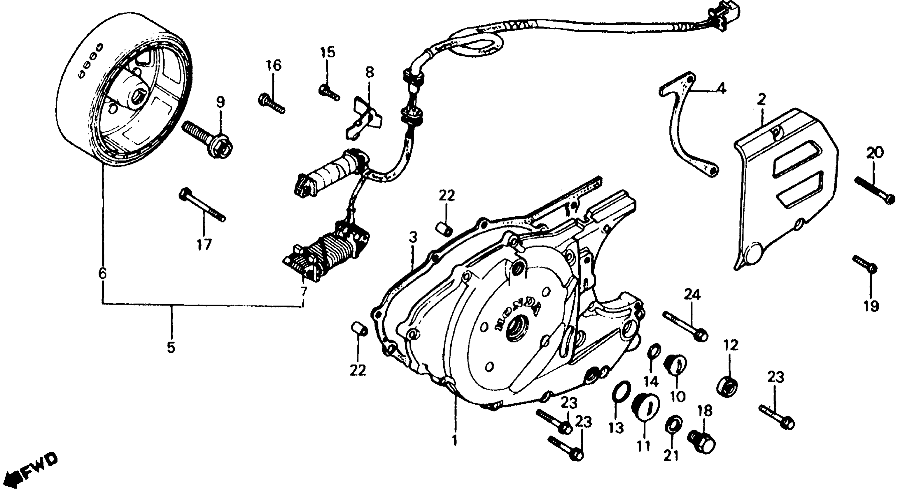 LEFT CRANKCASE COVER + ALTERNATOR 81-82