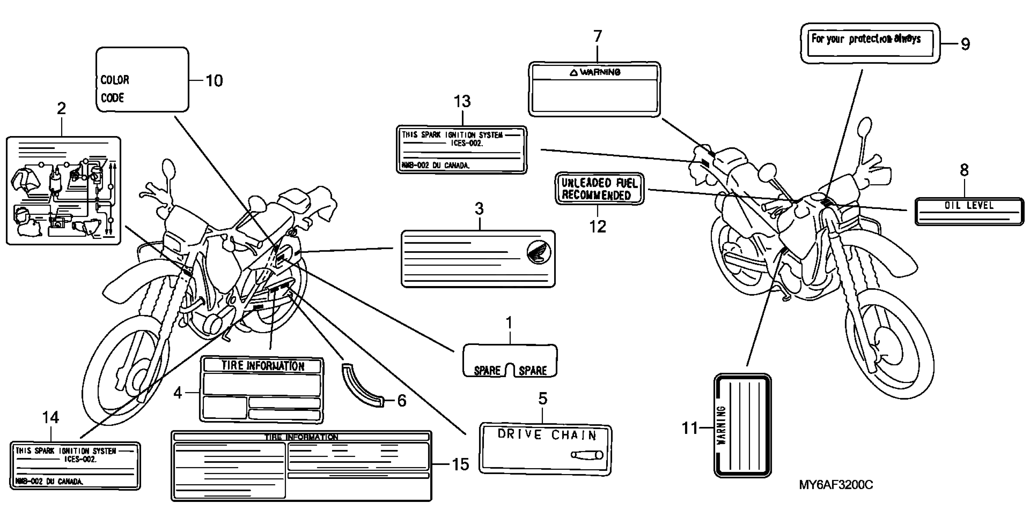 Honda XR650LA (01) MOTORCYCLE, JPN, VIN# JH2RD060-1K900001 TO JH2RD060-1K999999 LABELS Diagram