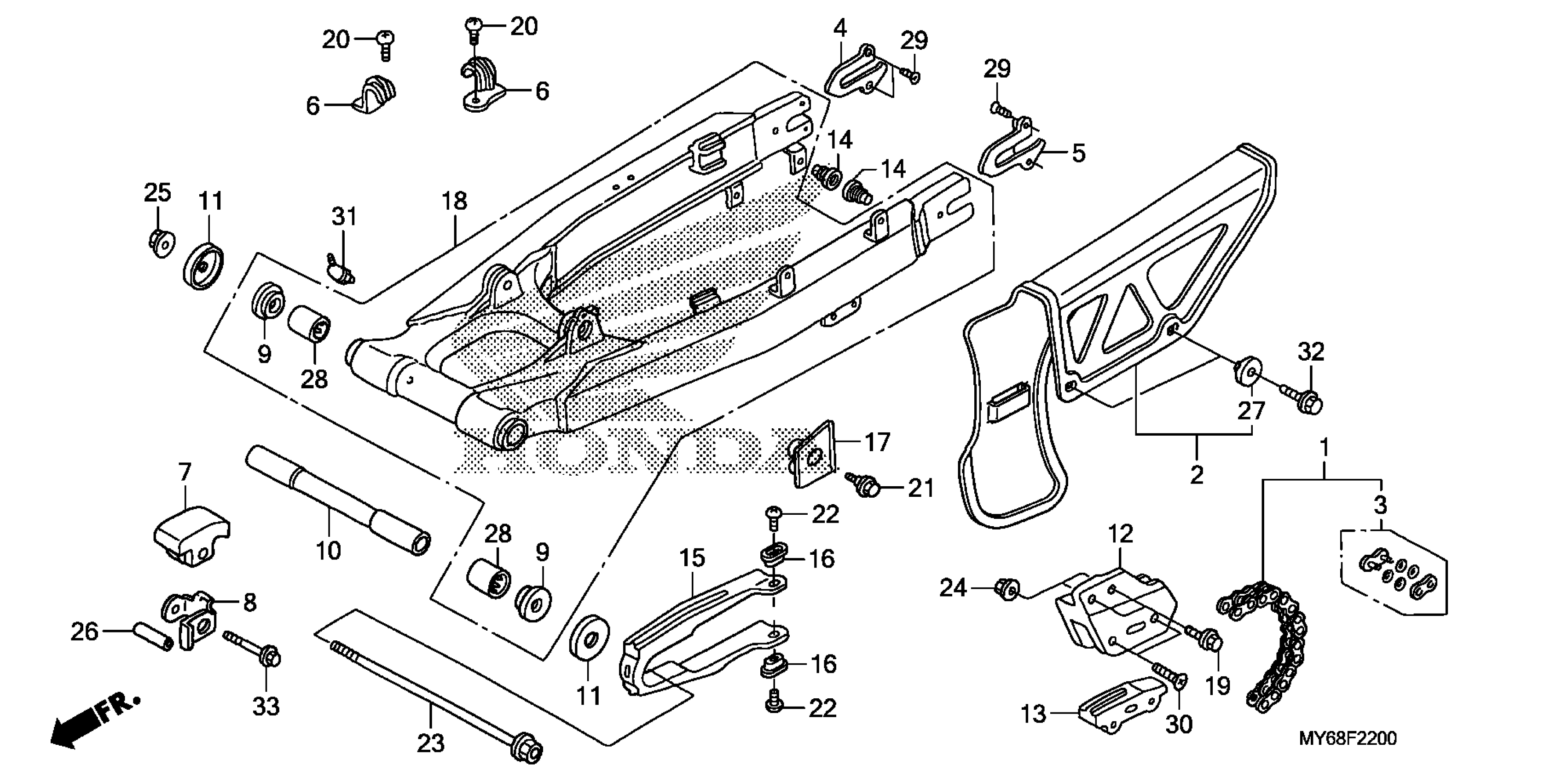 Honda XR650LA (16) XR650L, JPN, VIN# JH2RD060-GK400001 TO JH2RD060-GK499999 SWINGARM Diagram