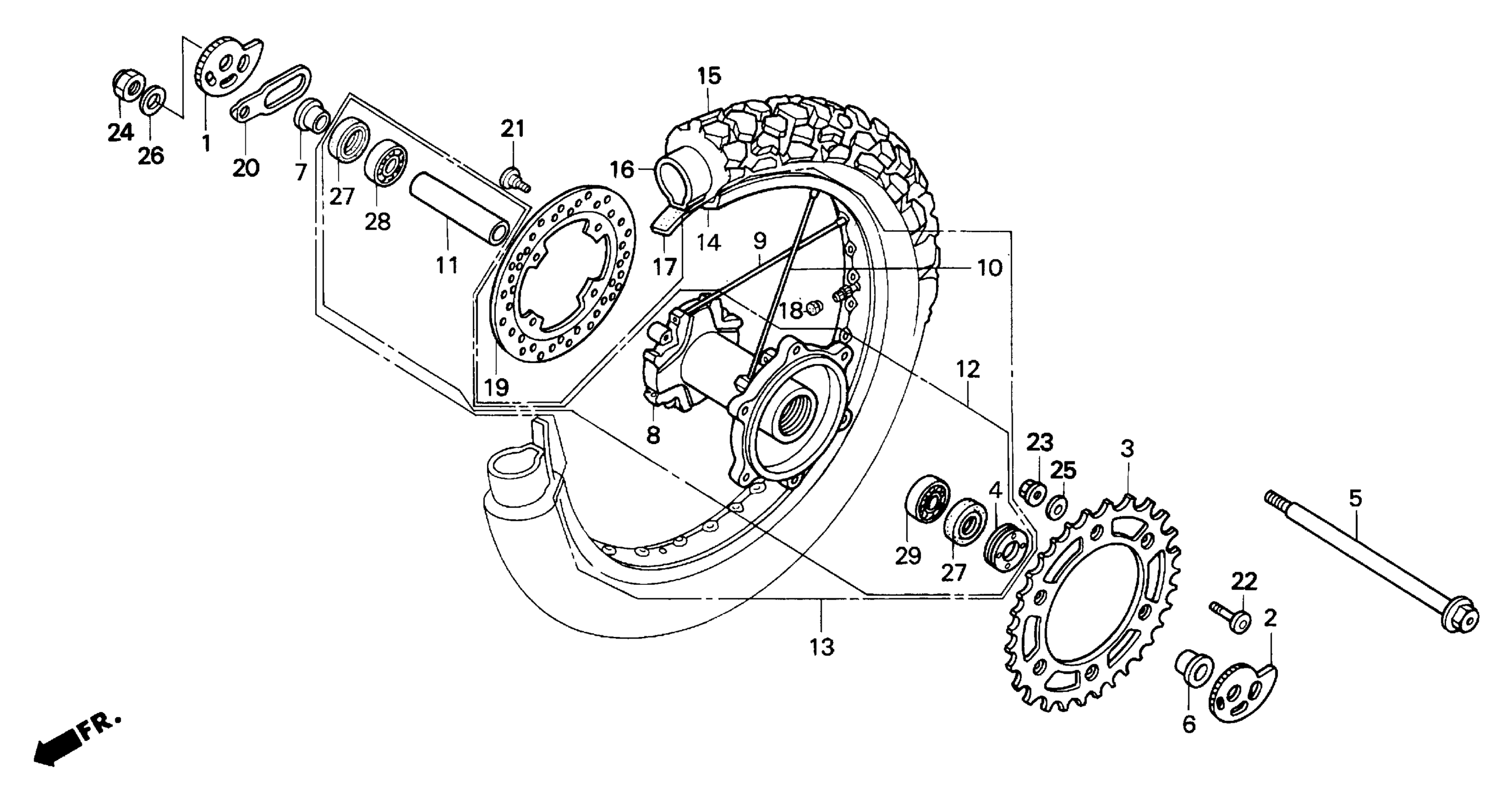 Honda XR650LA (94) MOTORCYCLE, JPN, VIN# JH2RD060-RM100007 TO JH2RD060-RM103099 REAR WHEEL Diagram