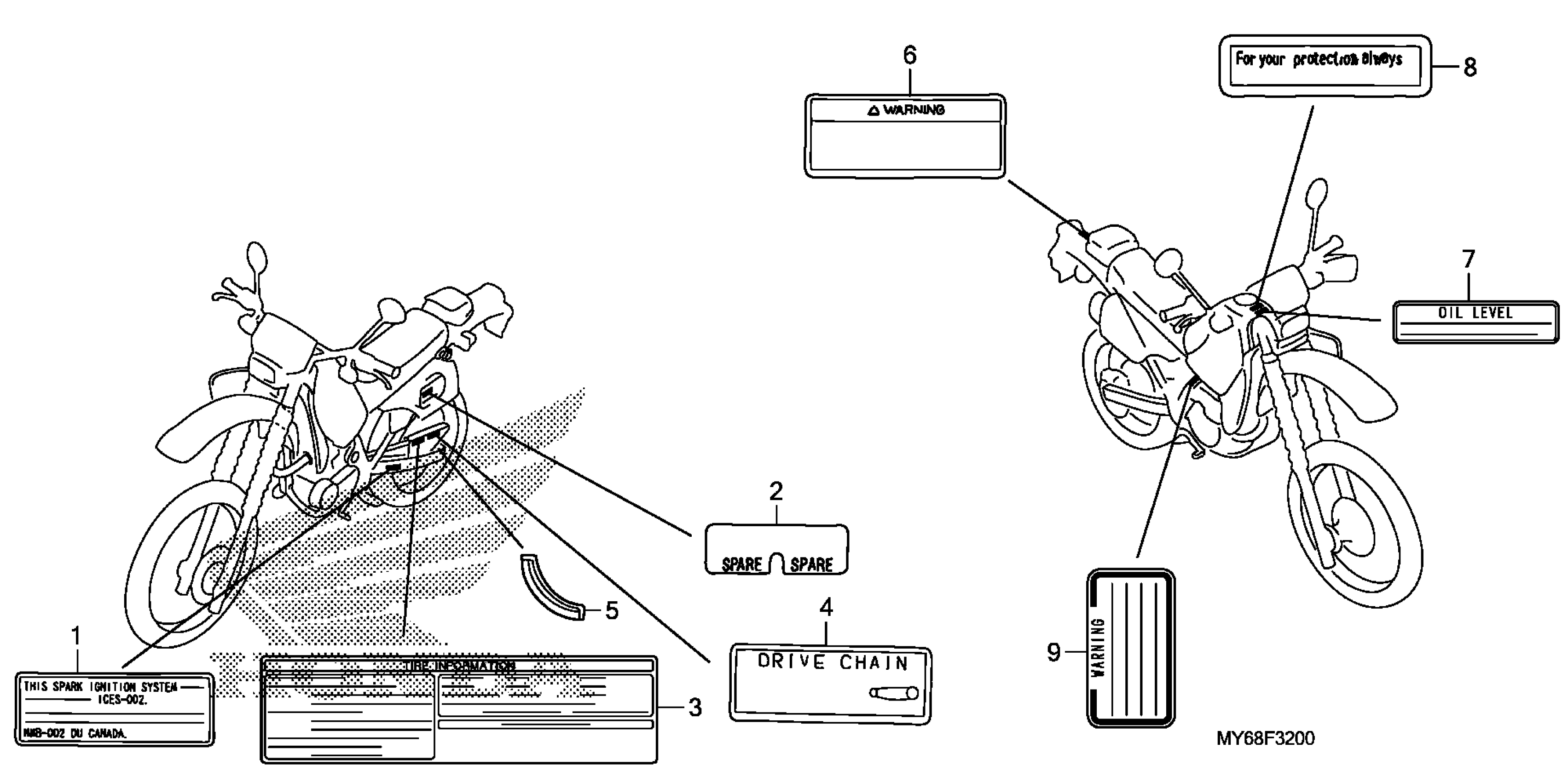 Honda XR650LAC (14) XR650L, JPN, VIN# JH2RD061-EK200001 TO JH2RD061-EK299999 LABEL Diagram