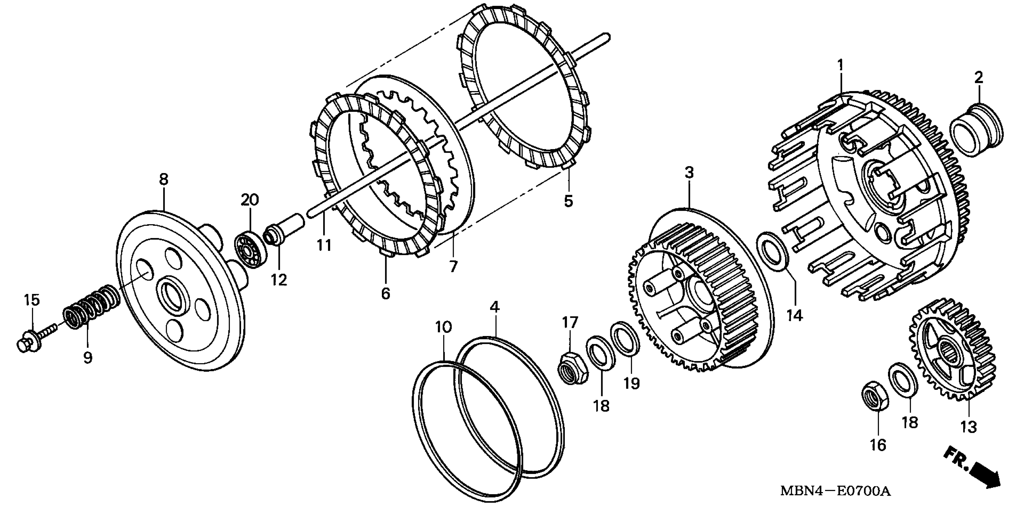 Honda XR650RA (01) MOTORCYCLE, JPN, VIN# JH2RE010-1K200001 TO JH2RE010-1K299999 CLUTCH Diagram