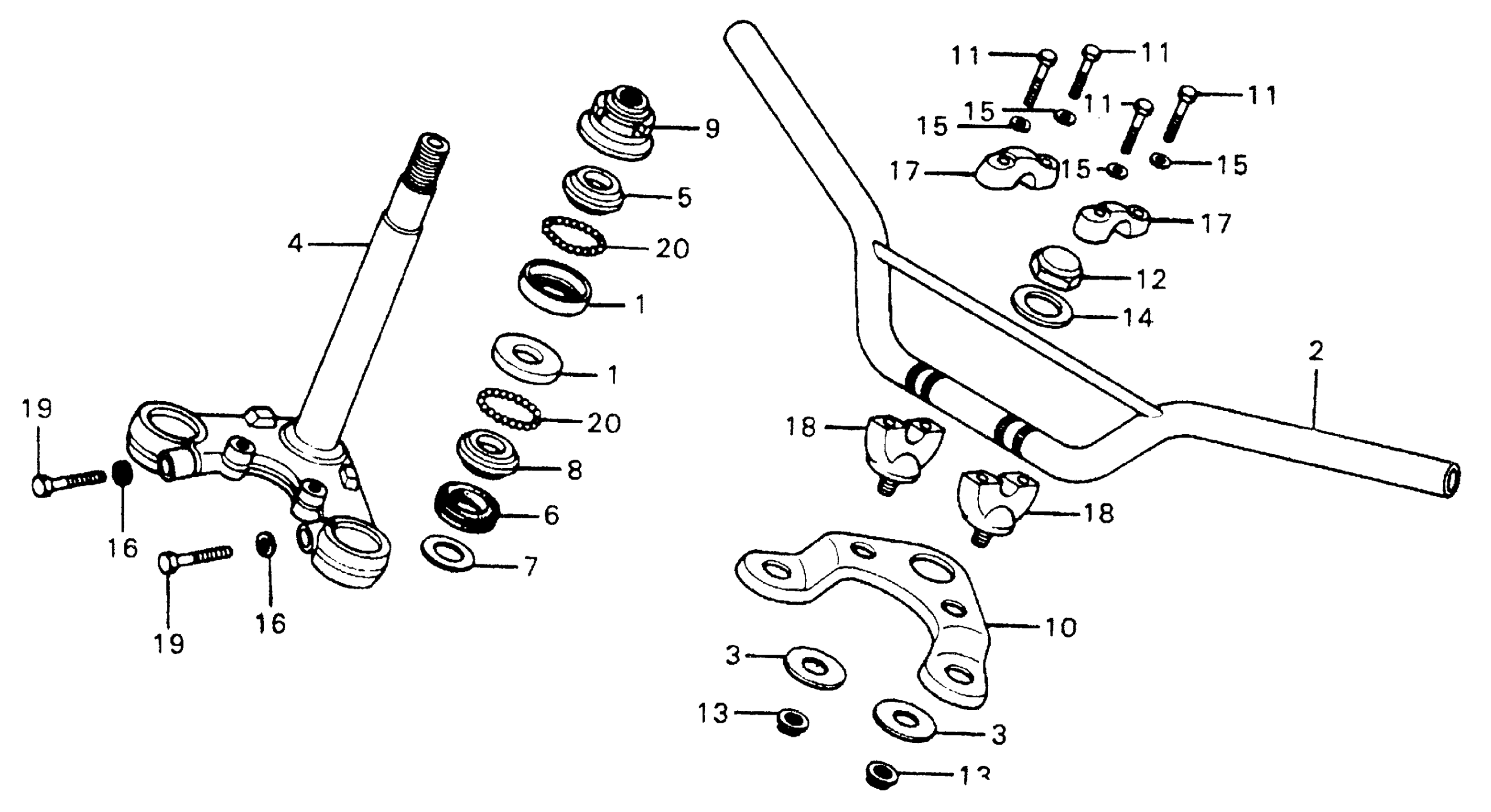 Honda XR75A (78) MOTORCYCLE, JPN, VIN# XR75-1500003 HANDLEBAR + TOP BRIDGE + STEM Diagram