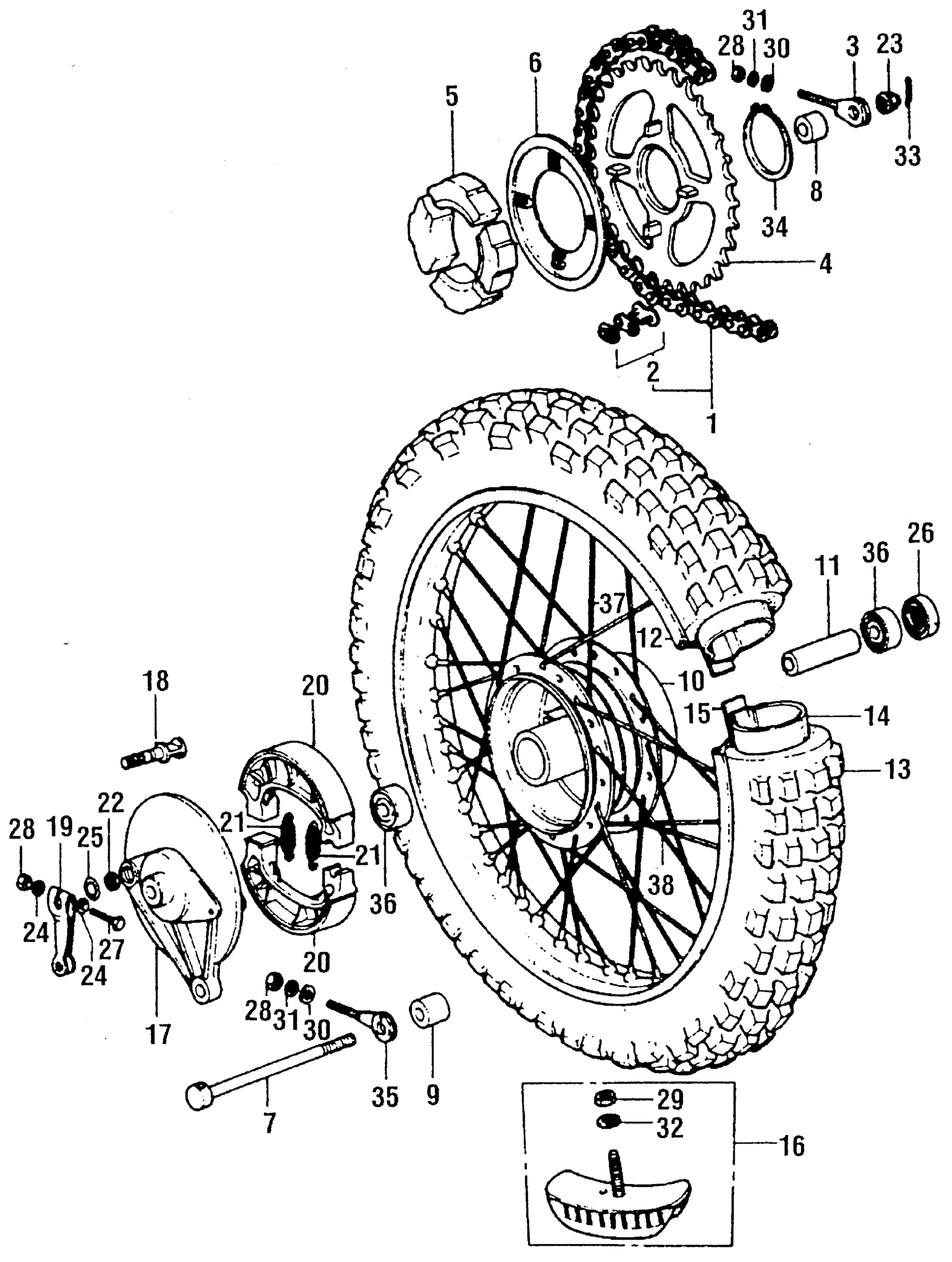 Honda XR75K1A MOTORCYCLE, JPN, VIN# XR75-1100001 TO XR75-1138920 REAR WHEEL Diagram