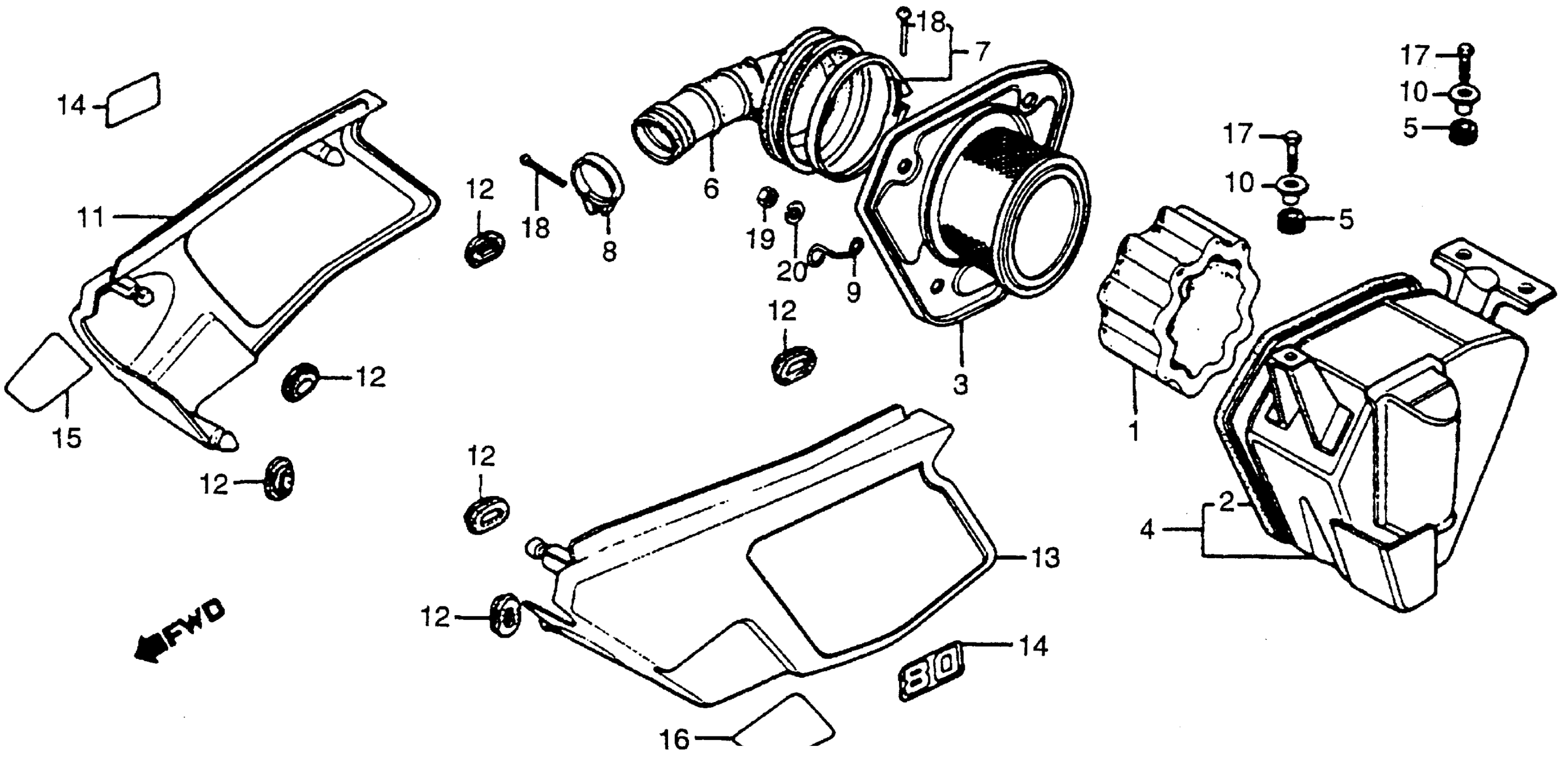Honda XR80A (83) MOTORCYCLE, JPN, VIN# JH2HE010-DK400004 TO JH2HE010-DK412075 AIR CLEANER + SIDE COVER 83-84 Diagram