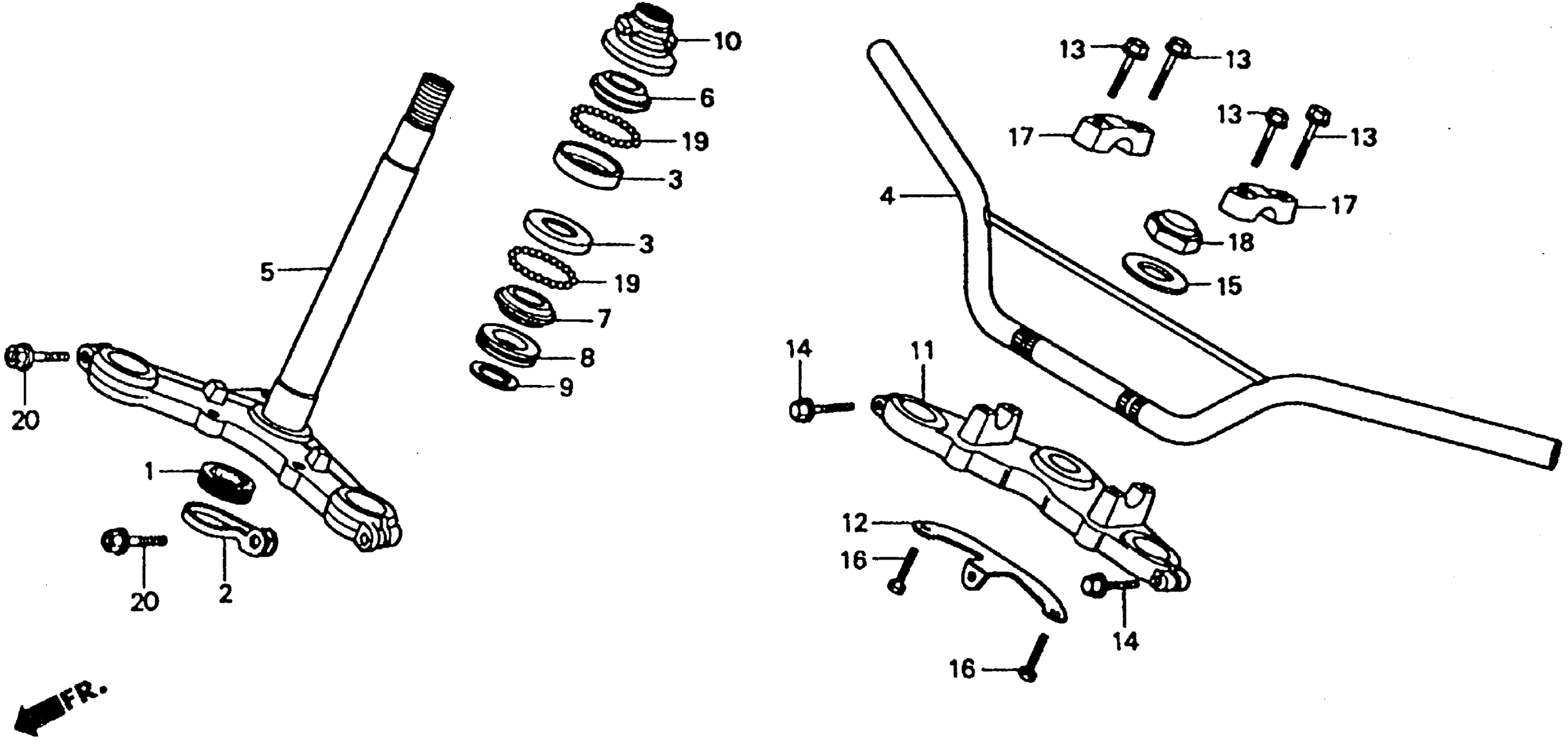 Honda XR80RA (85) MOTORCYCLE, JPN, VIN# JH2HE010-FK600006 TO JH2HE010-FK612267 HANDLEBAR + STEERING STEM Diagram