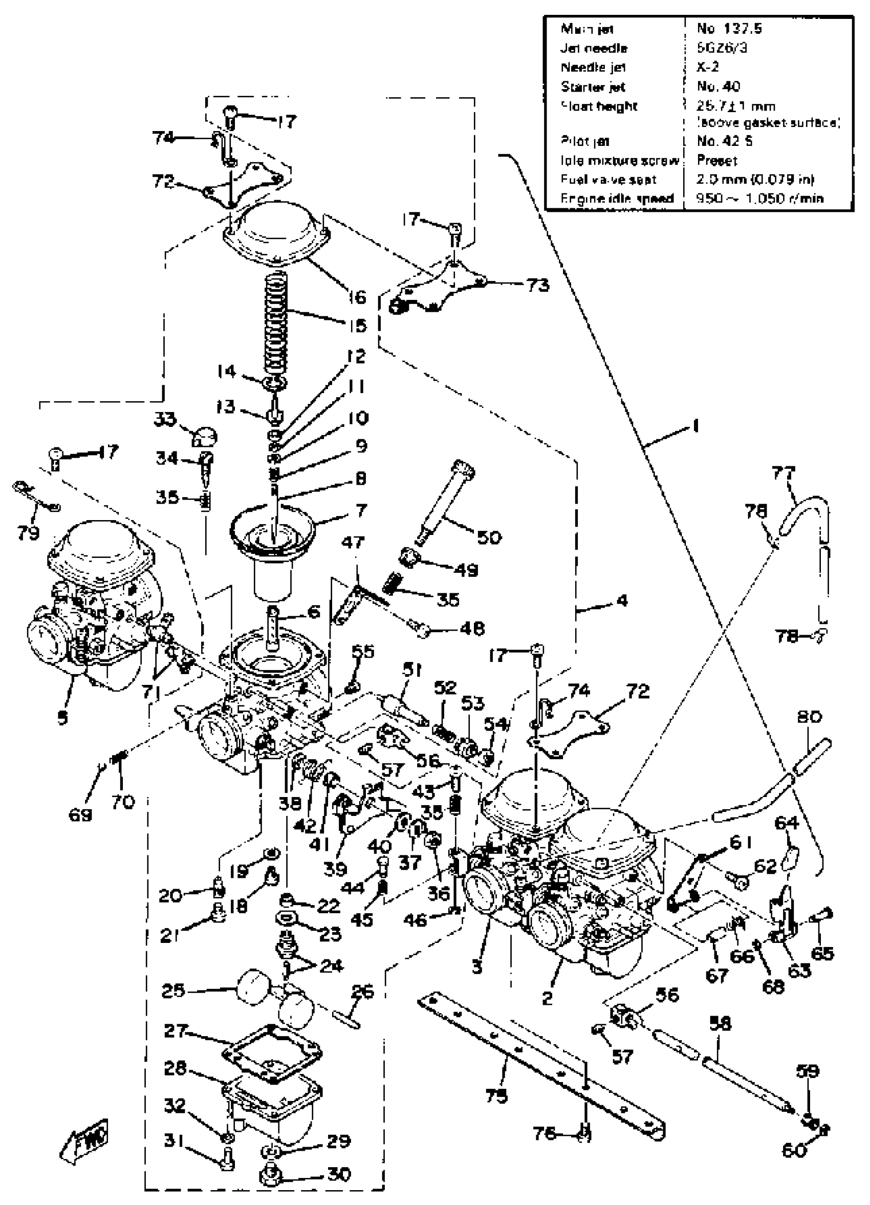 Yamaha XS1100E (XS1100) 1978 CARBURETOR Diagram