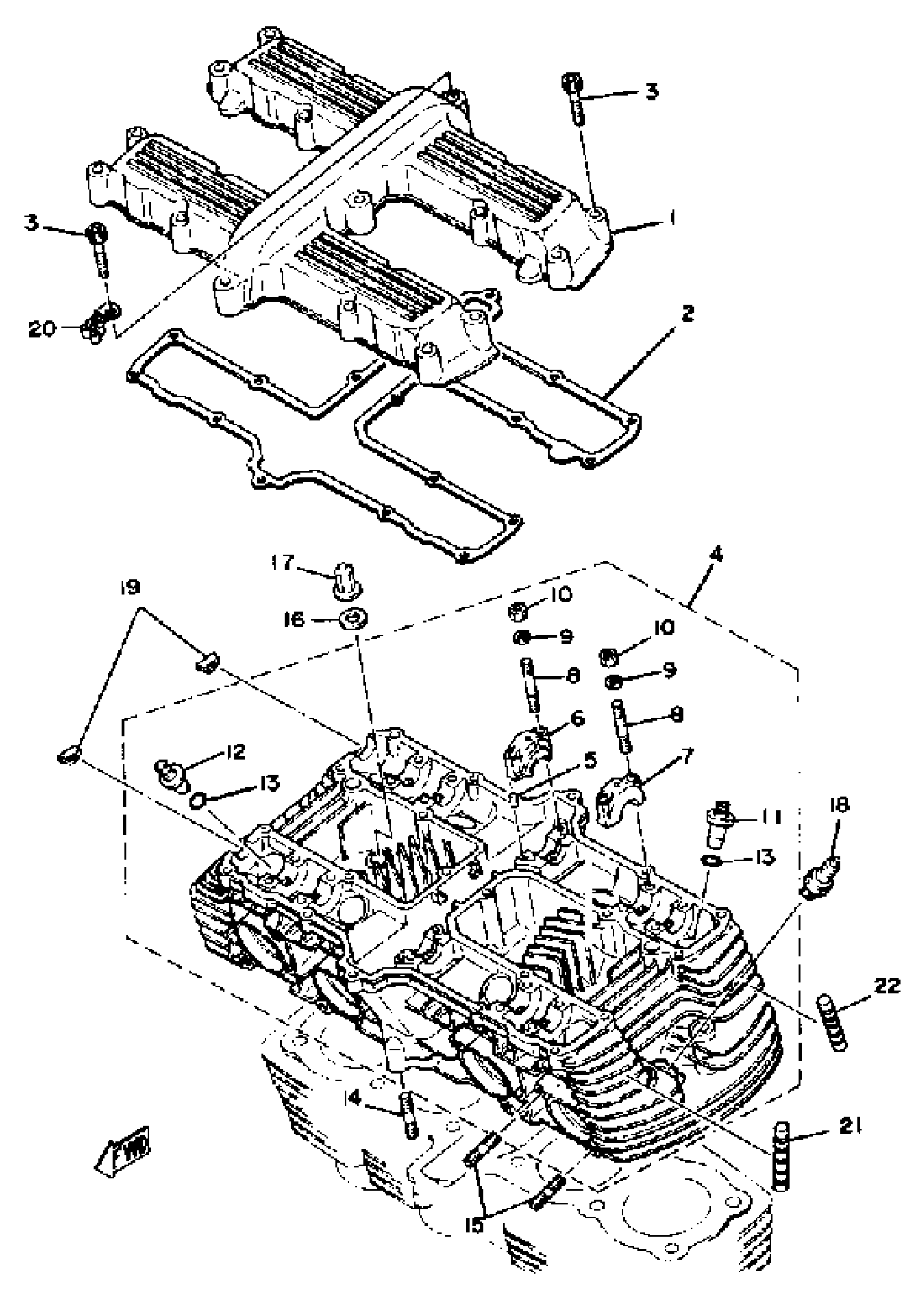 Yamaha XS1100E (XS1100) 1978 CYLINDER HEAD COVER-CYLINDER HEAD Diagram