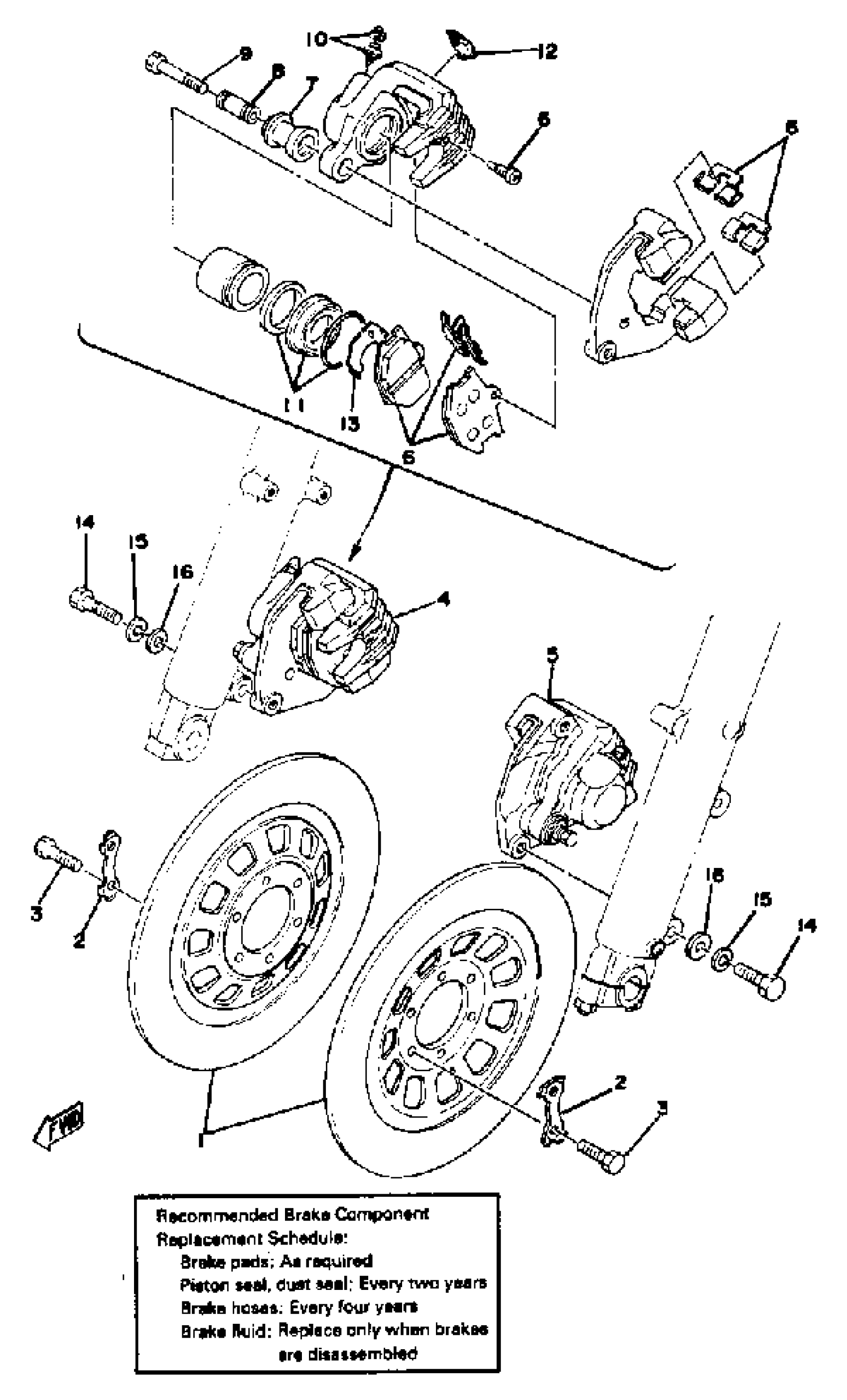 Yamaha XS1100E (XS1100) 1978 FRONT DISC BRAKE-CALIPER Diagram