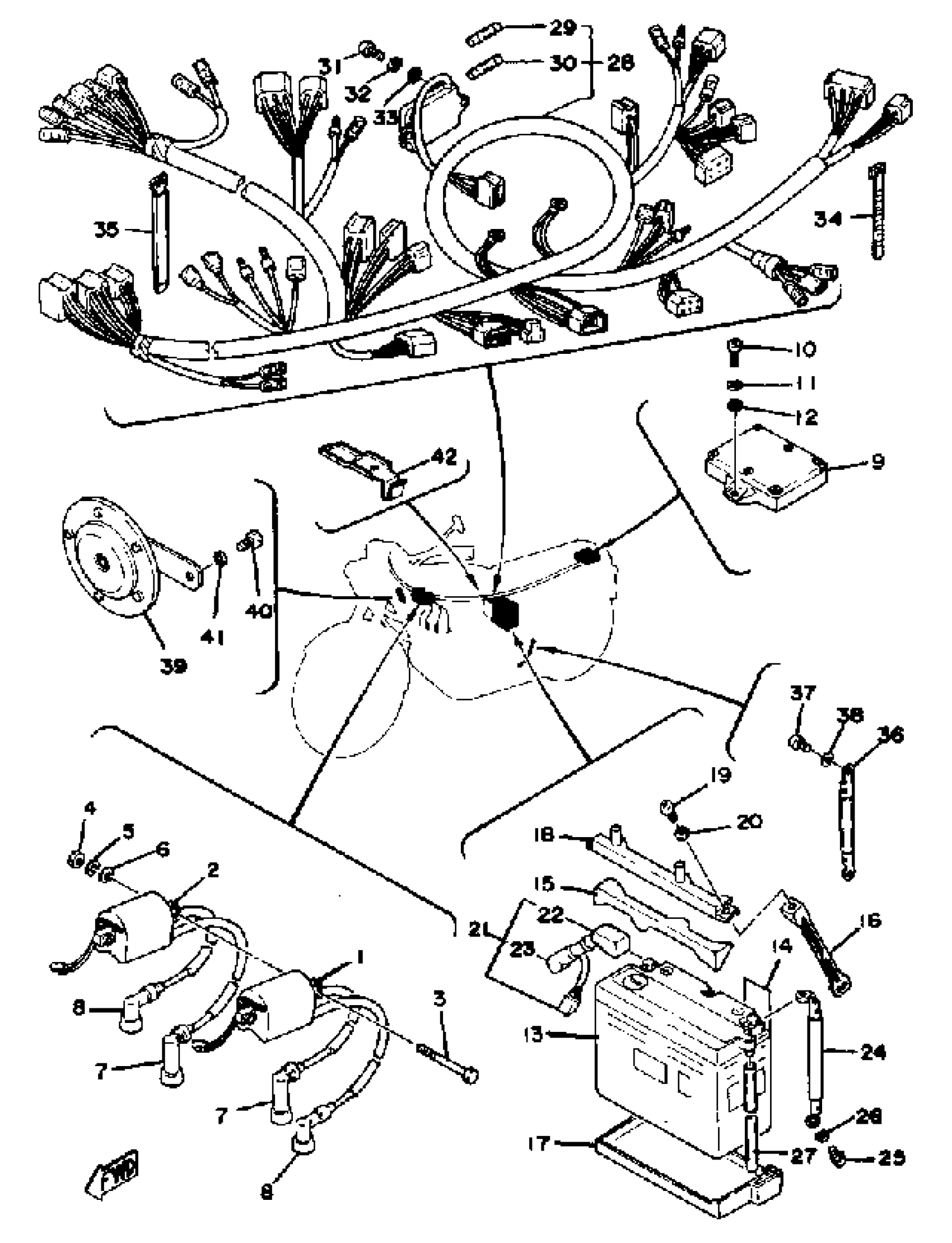 Yamaha XS1100E (XS1100) 1978 IGNITION COIL BATTERY-WIRE HARNESS Diagram