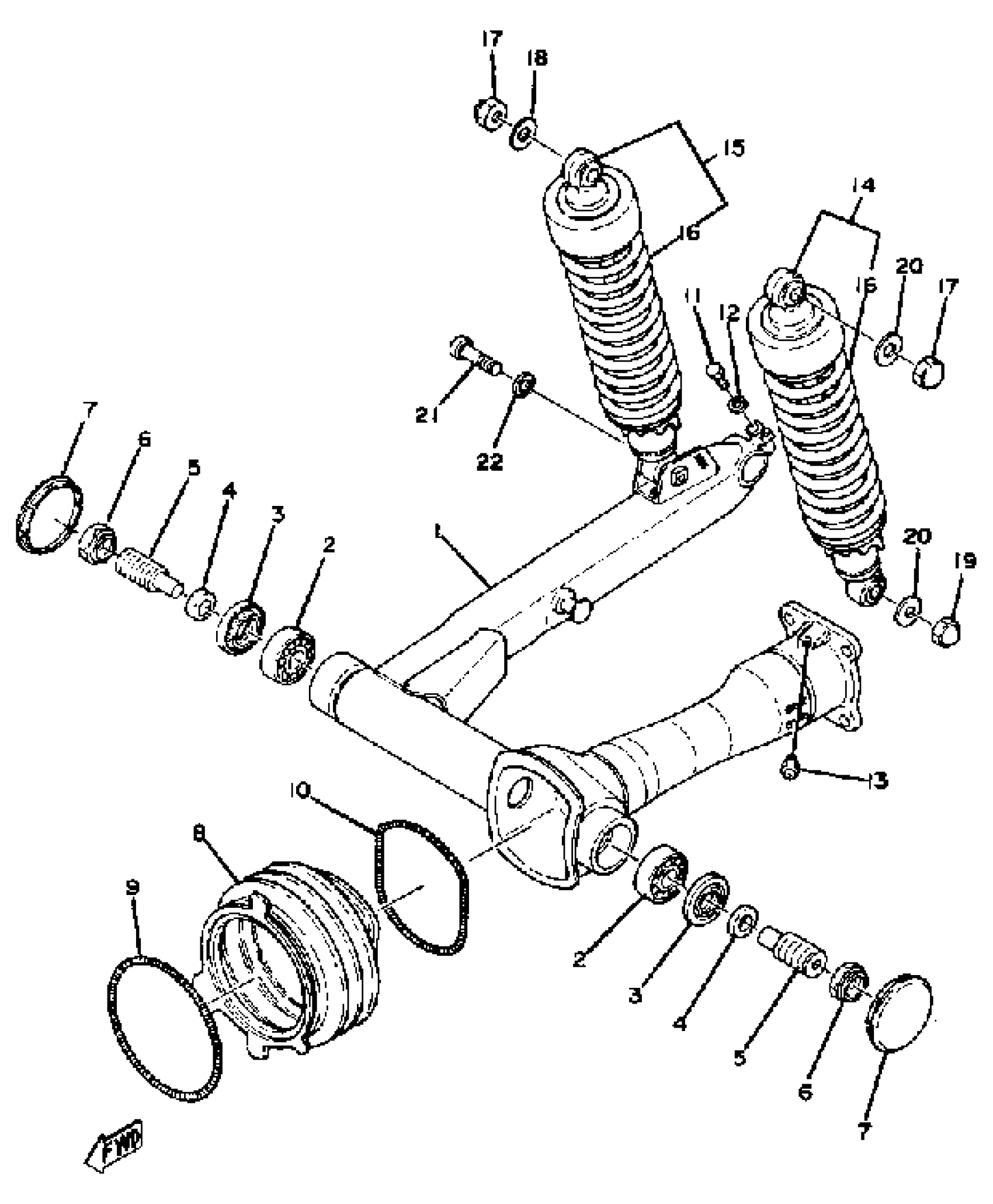 Yamaha XS1100E (XS1100) 1978 REAR ARM-REAR CUSHION Diagram
