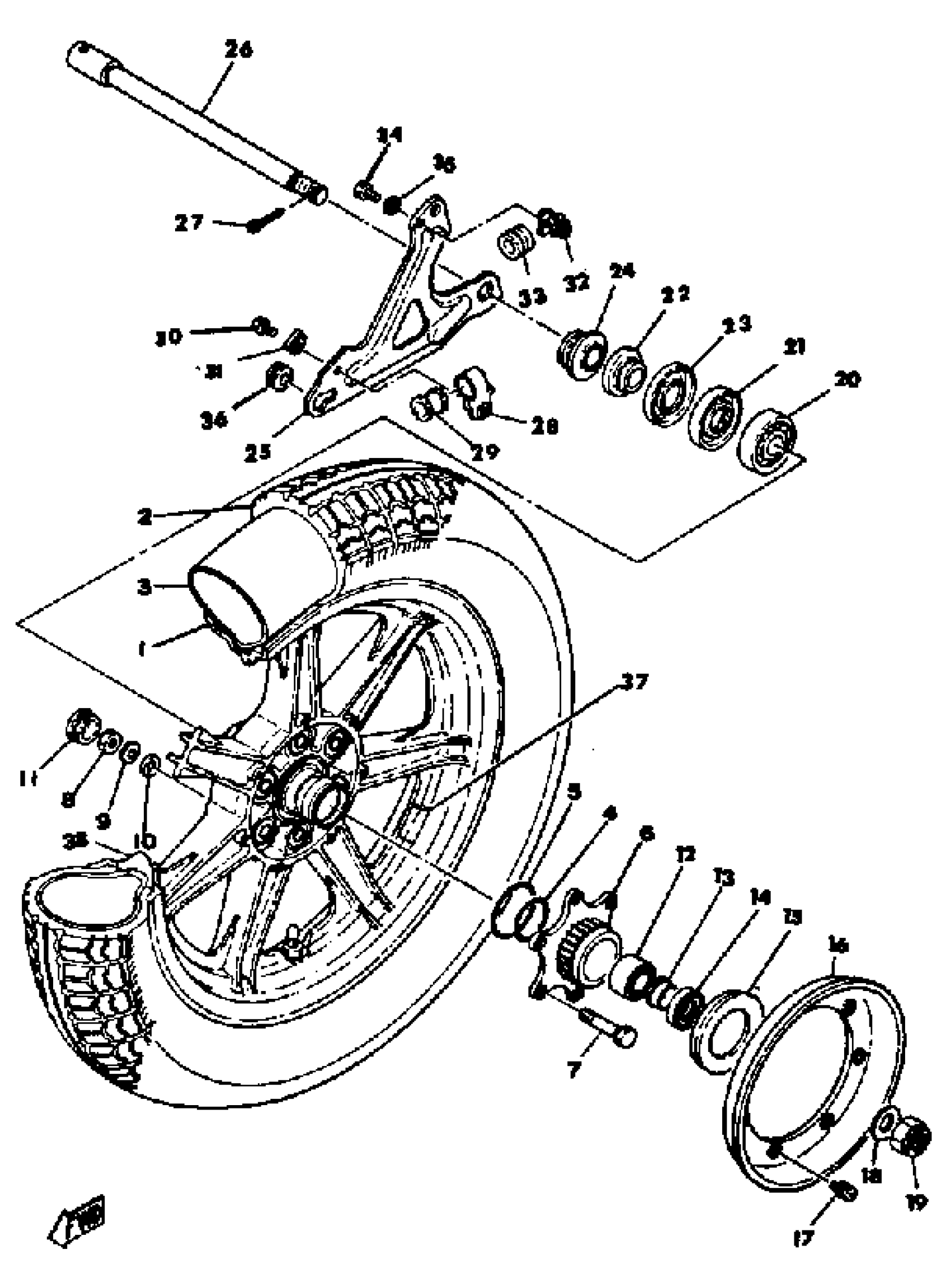 Yamaha XS1100E (XS1100) 1978 REAR WHEEL Diagram