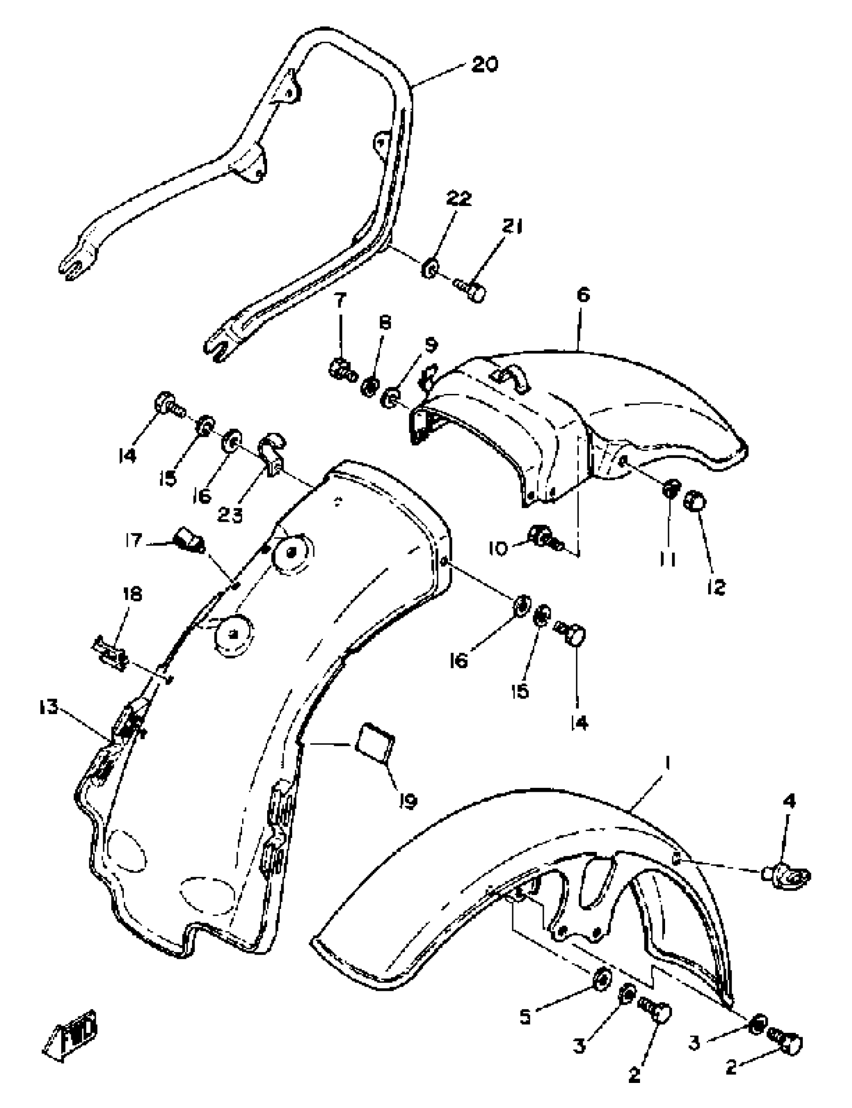 Yamaha XS1100SH (XS1100S) 1981 FRONT FENDER REAR FENDER Diagram
