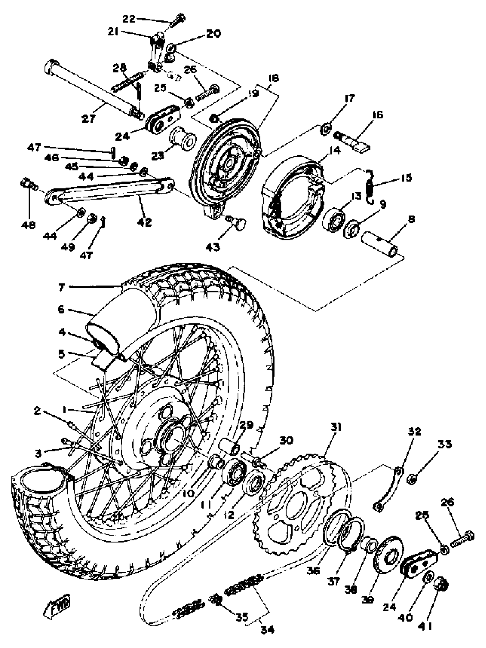 Yamaha XS360C (XS360) 1976 REAR WHEEL Diagram