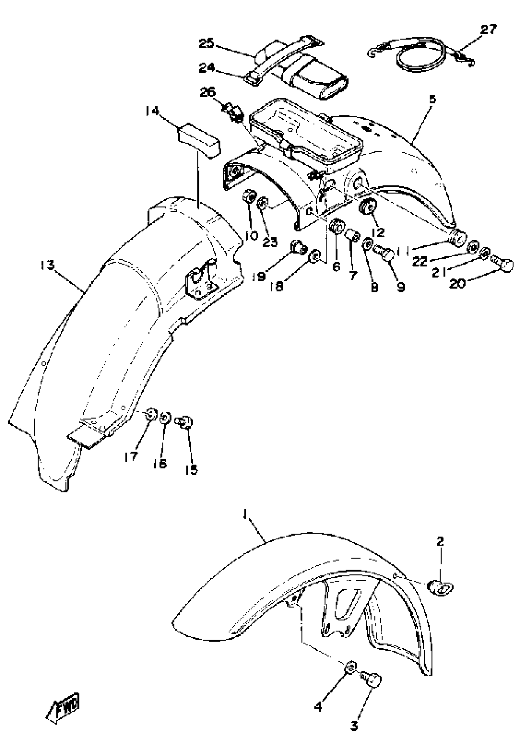 Yamaha XS400-2E (XS400) 1978 FRONT FENDER - REAR FENDER Diagram
