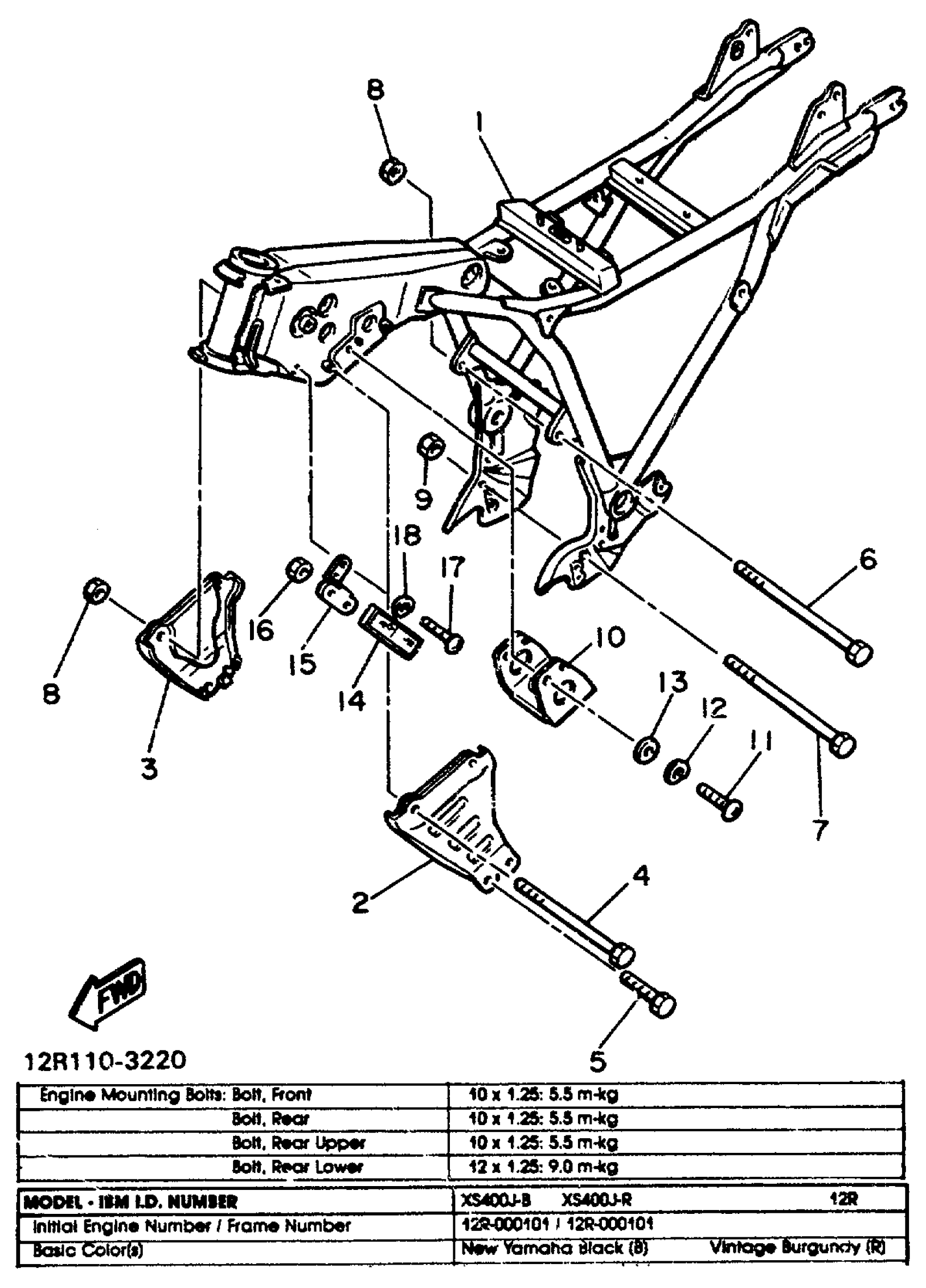 Yamaha XS400J (XS400) 1982 FRAME Diagram