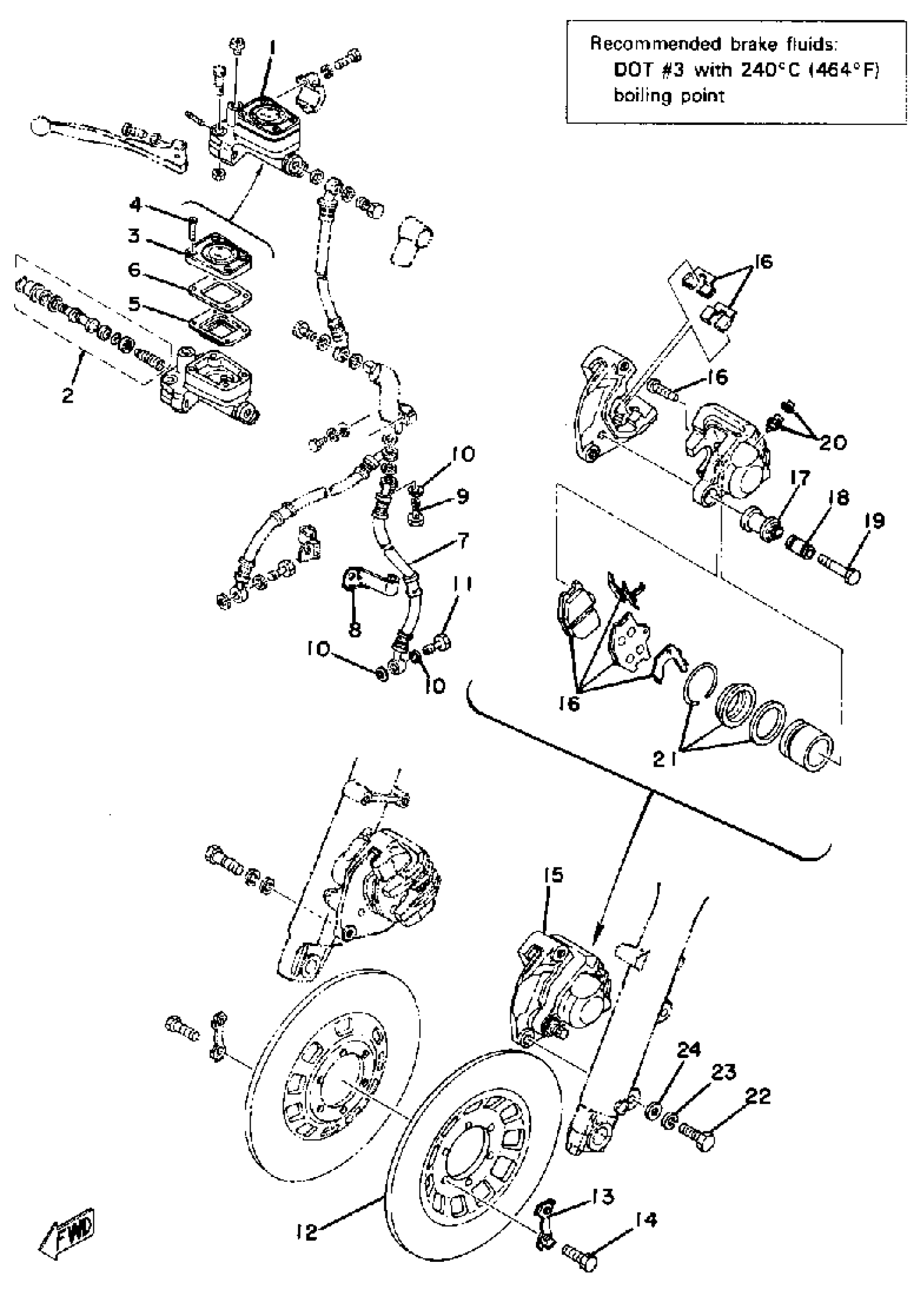 Yamaha XS500C (XS500) 1976 DOUBLE DISC BRAKE Diagram
