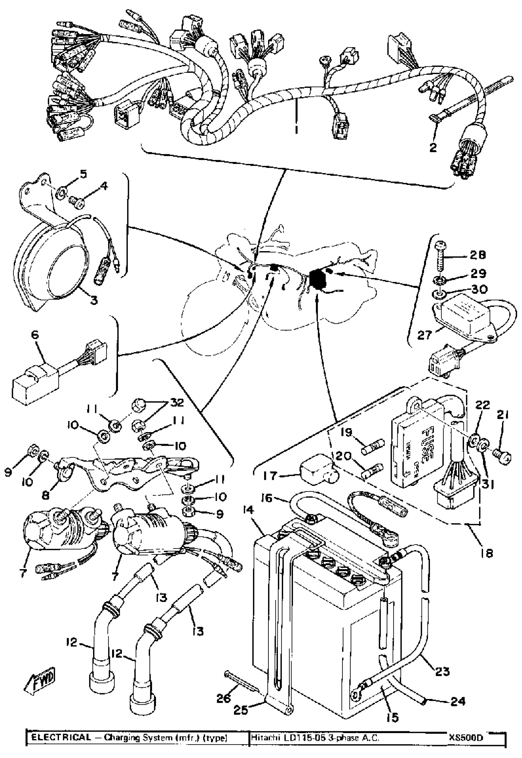 Yamaha XS500C (XS500) 1976 ELECTRICAL 1 Diagram