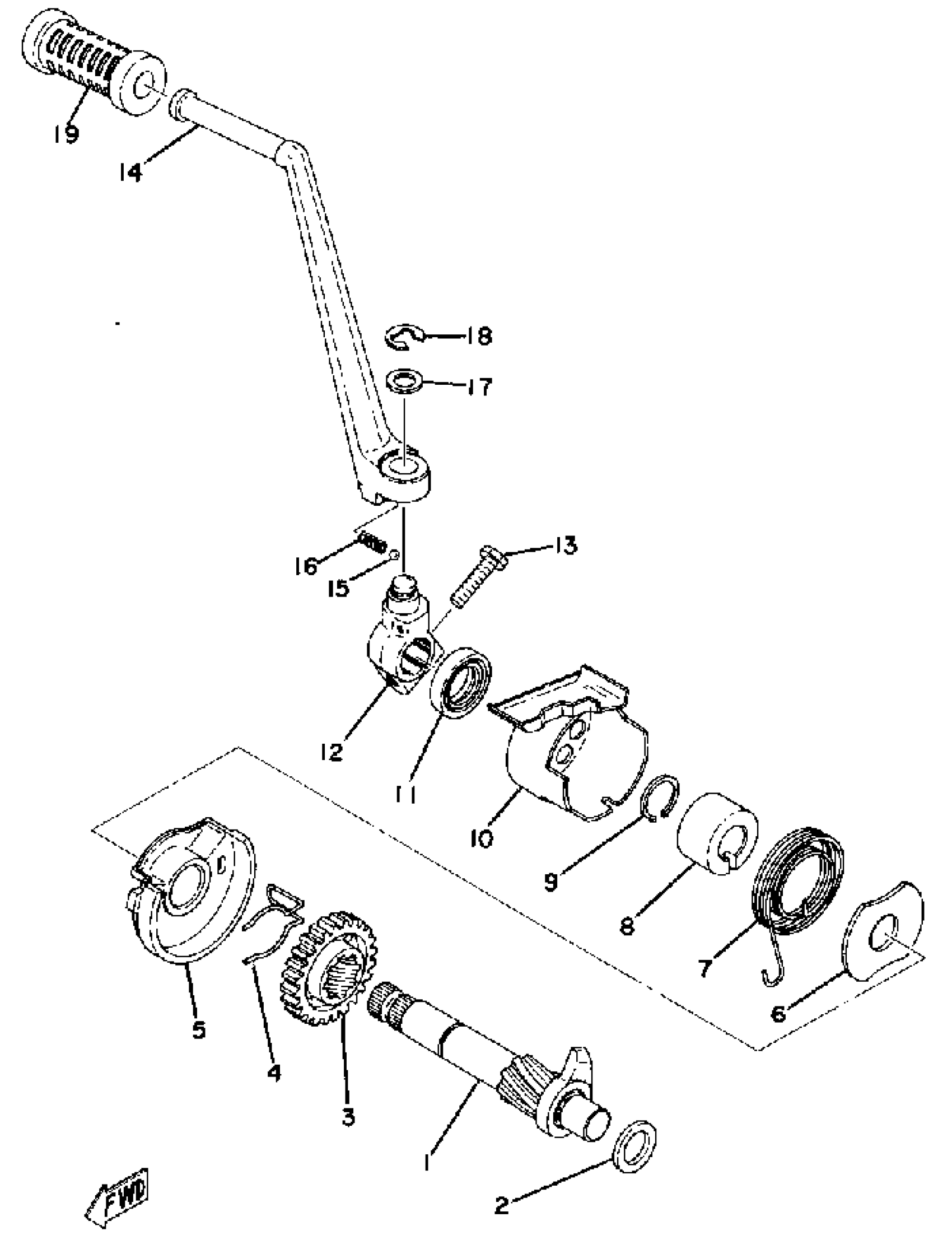 Yamaha XS500C (XS500) 1976 KICK STARTER Diagram