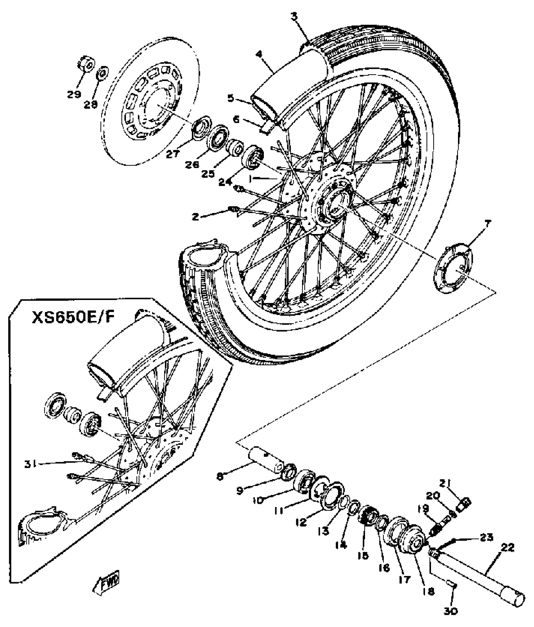 Yamaha XS650D (XS650) 1977 FRONT WHEEL XS650D E E006501~ F Diagram