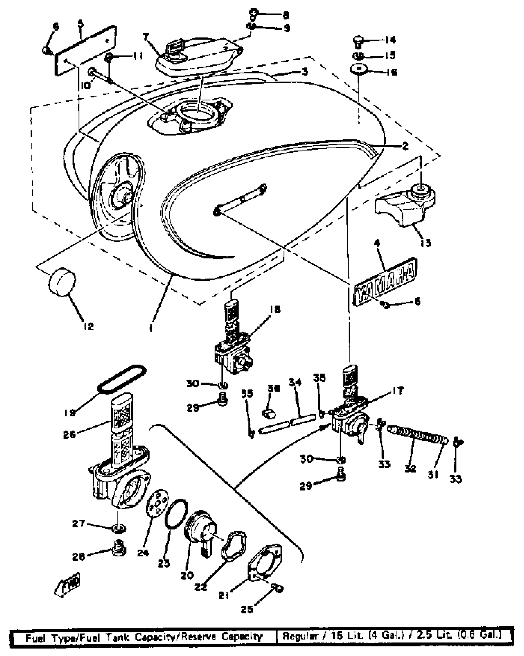 Yamaha XS650D (XS650) 1977 FUEL TANK XS650F Diagram