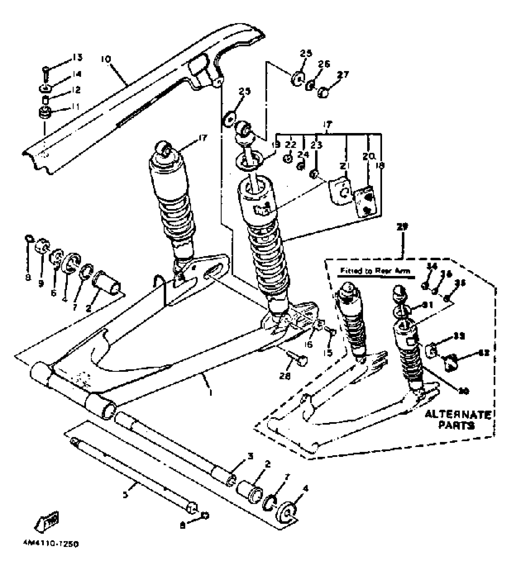 Yamaha XS650SJ (XS650S) 1982 REAR ARM SUSPENSION Diagram