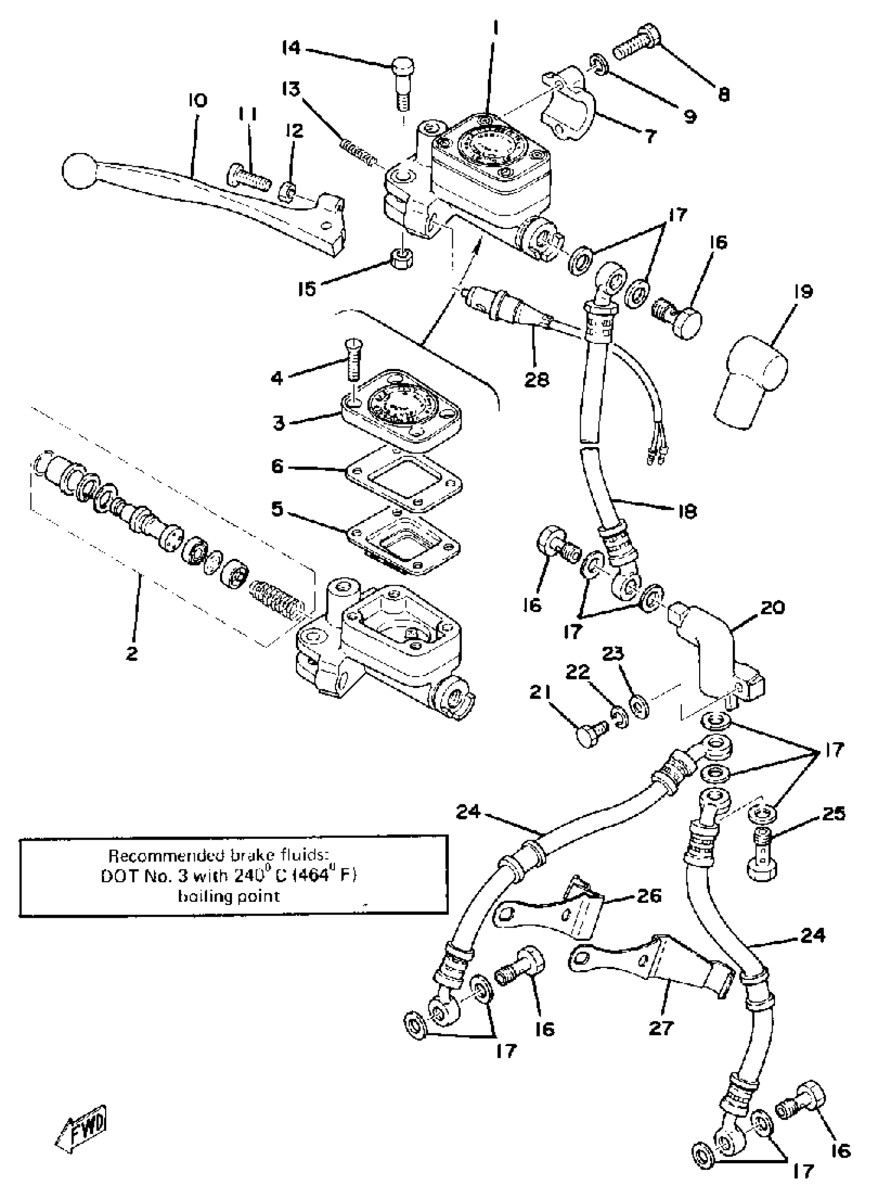 Yamaha XS750D (XS750) 1977 FRONT MASTER CYLINDER - BRAKE HOSE Diagram