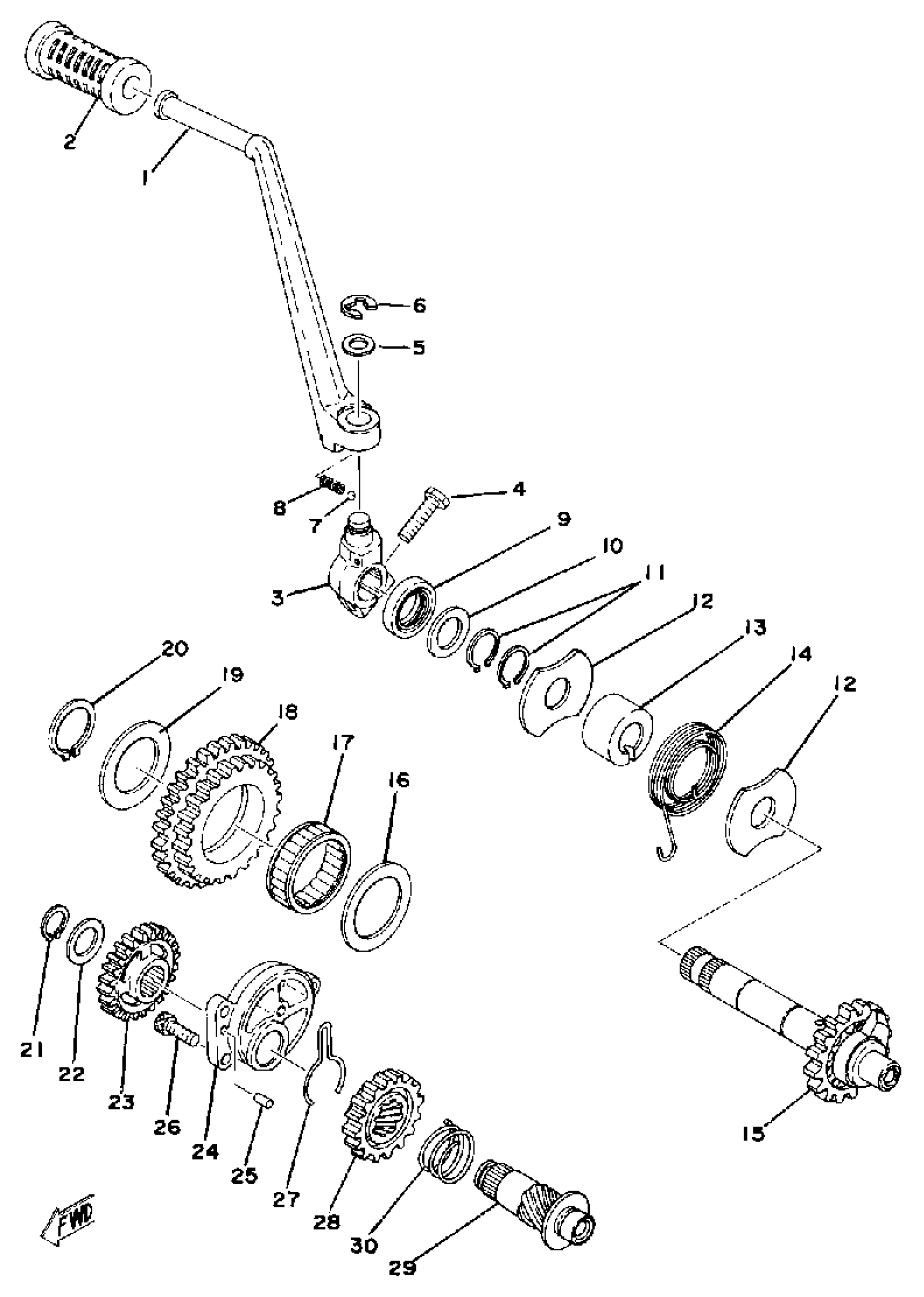 Yamaha XS750D (XS750) 1977 KICK STARTER Diagram