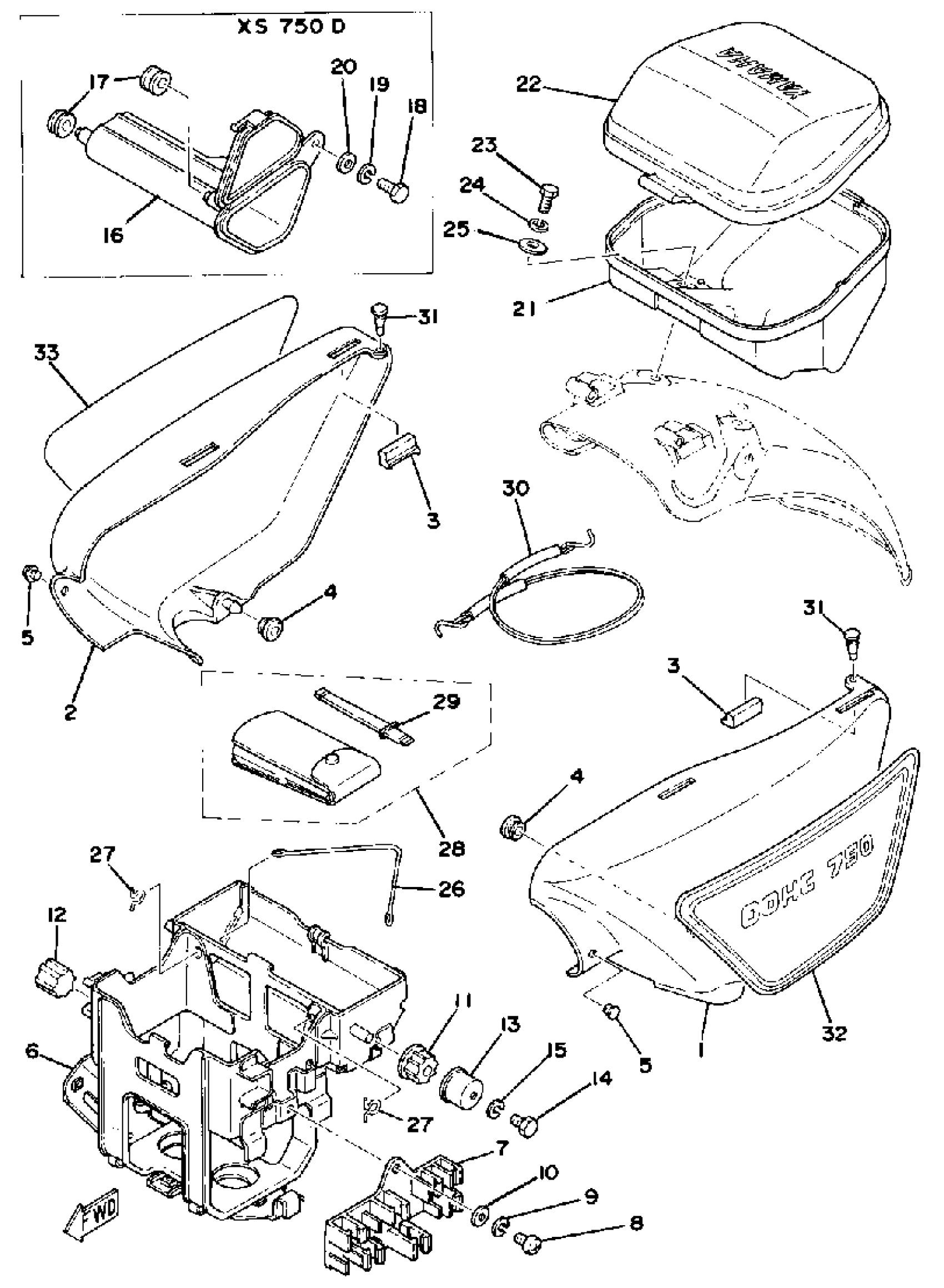 Yamaha XS750D (XS750) 1977 SIDE COVER - BATTERY BOX Diagram
