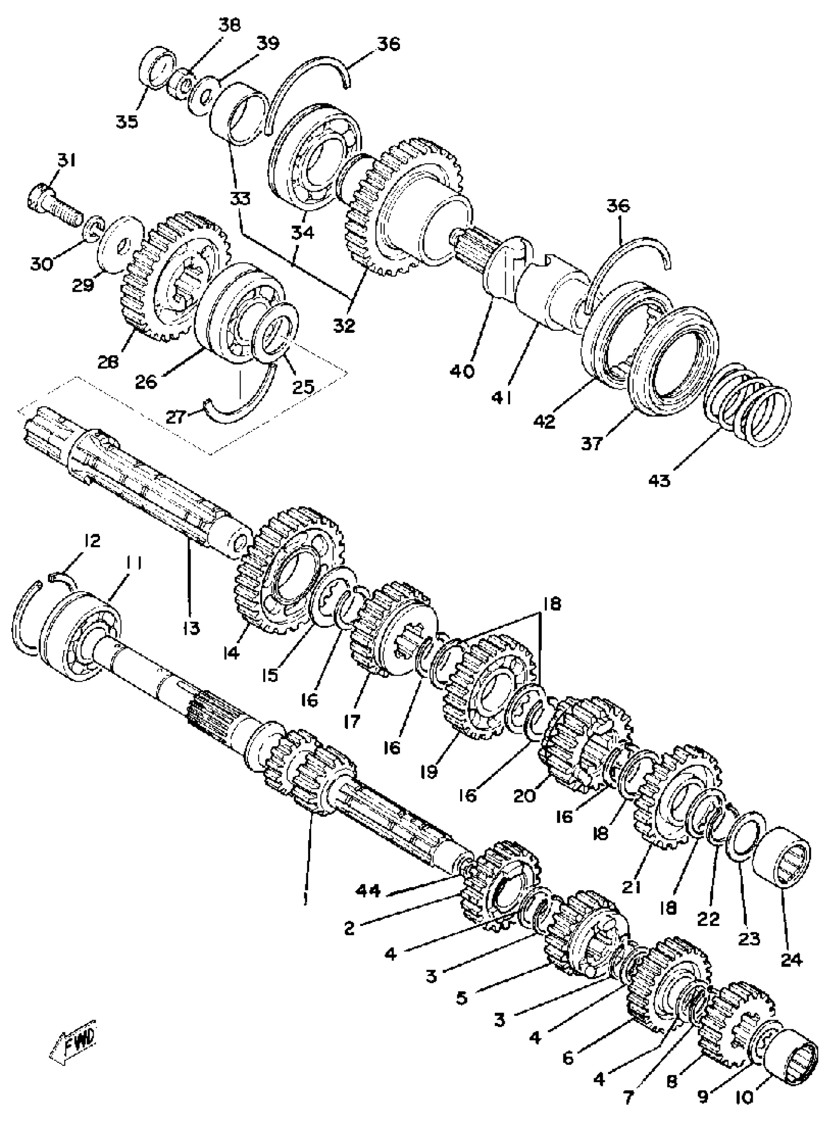 Yamaha XS750D (XS750) 1977 TRANSMISSION Diagram