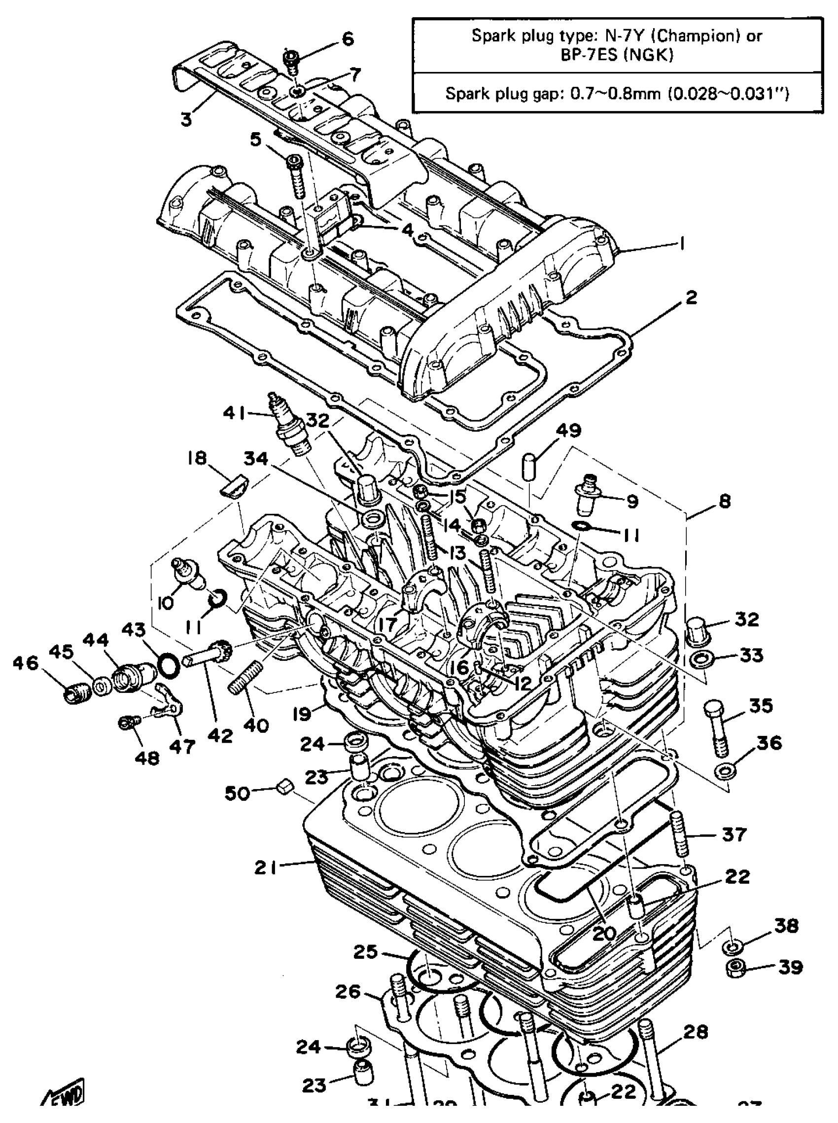 Yamaha XS750E (XS750) 1978 CYLINDER HEAD - CYLINDER Diagram