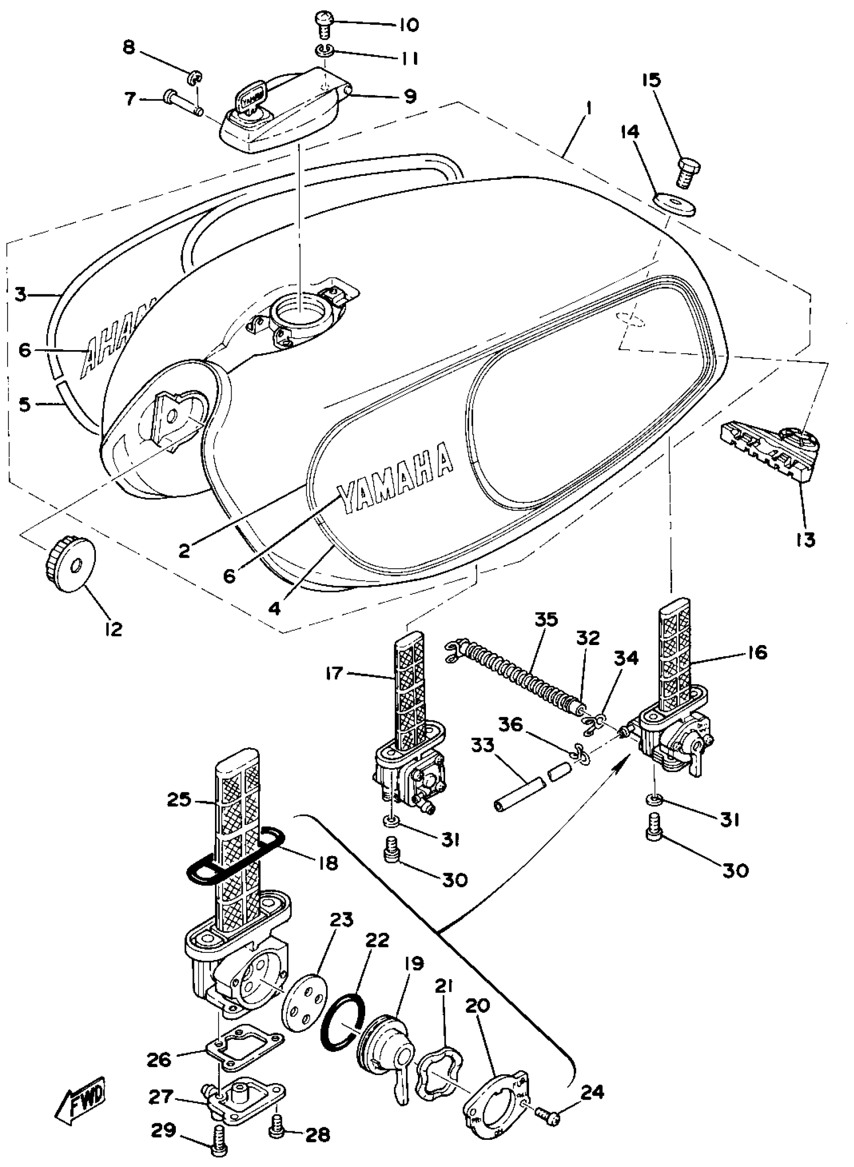 Yamaha XS750E (XS750) 1978 FUEL TANK Diagram