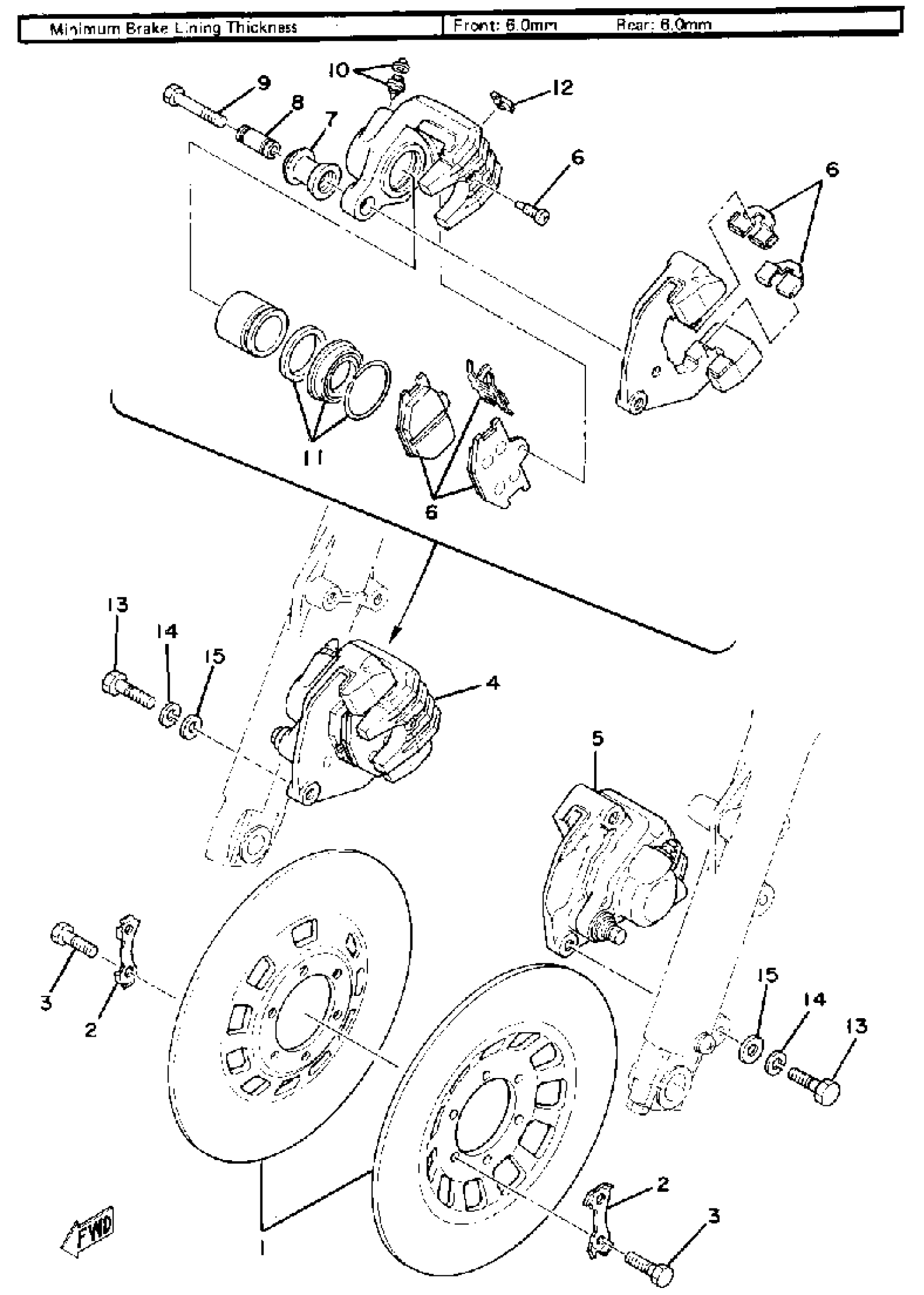 Yamaha XS750F (XS750) 1979 FRONT DISC BRAKE - CALIPER Diagram