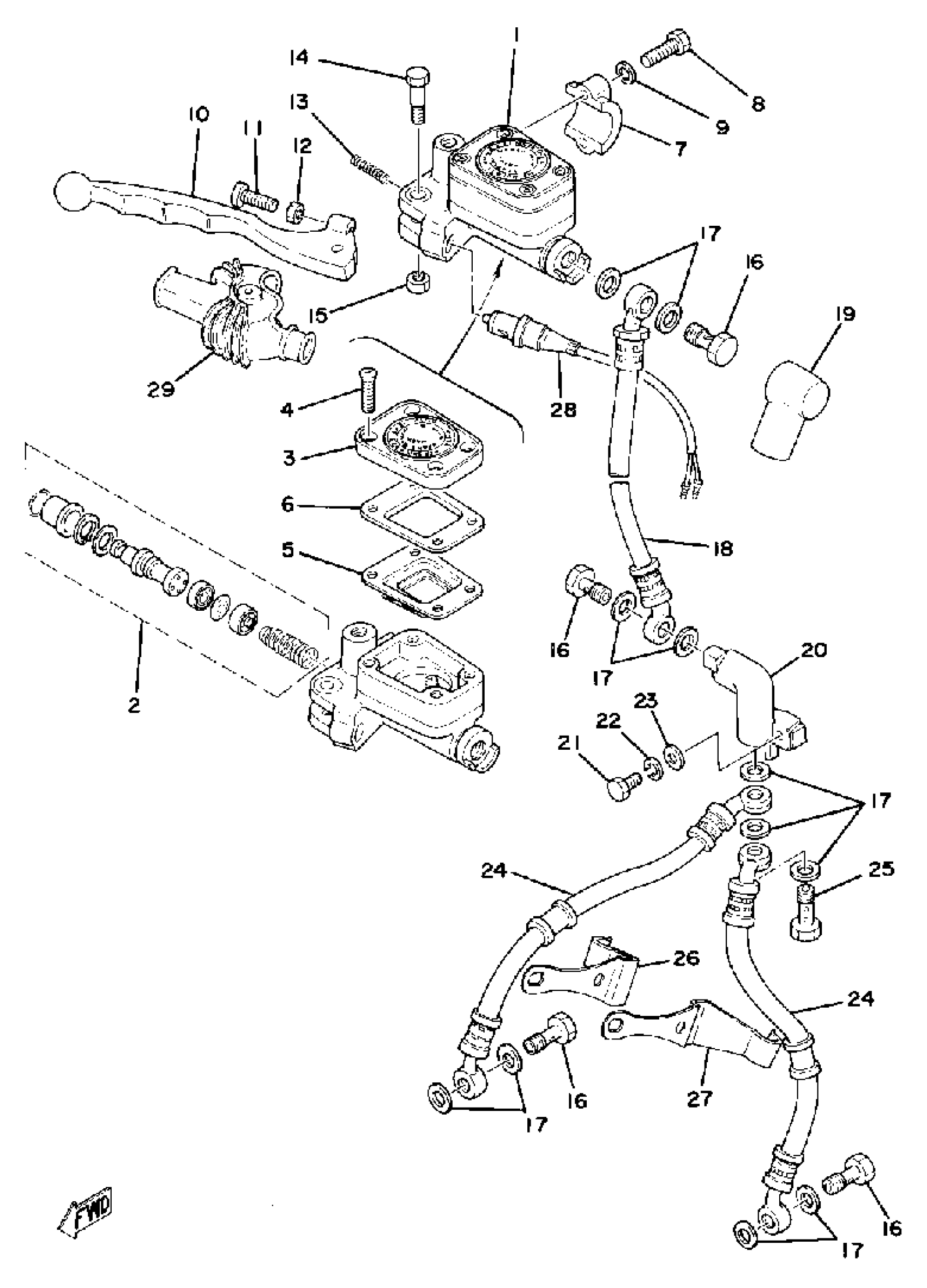 Yamaha XS750F (XS750) 1979 FRONT MASTER CYLINDER - BRAKE HOSE Diagram