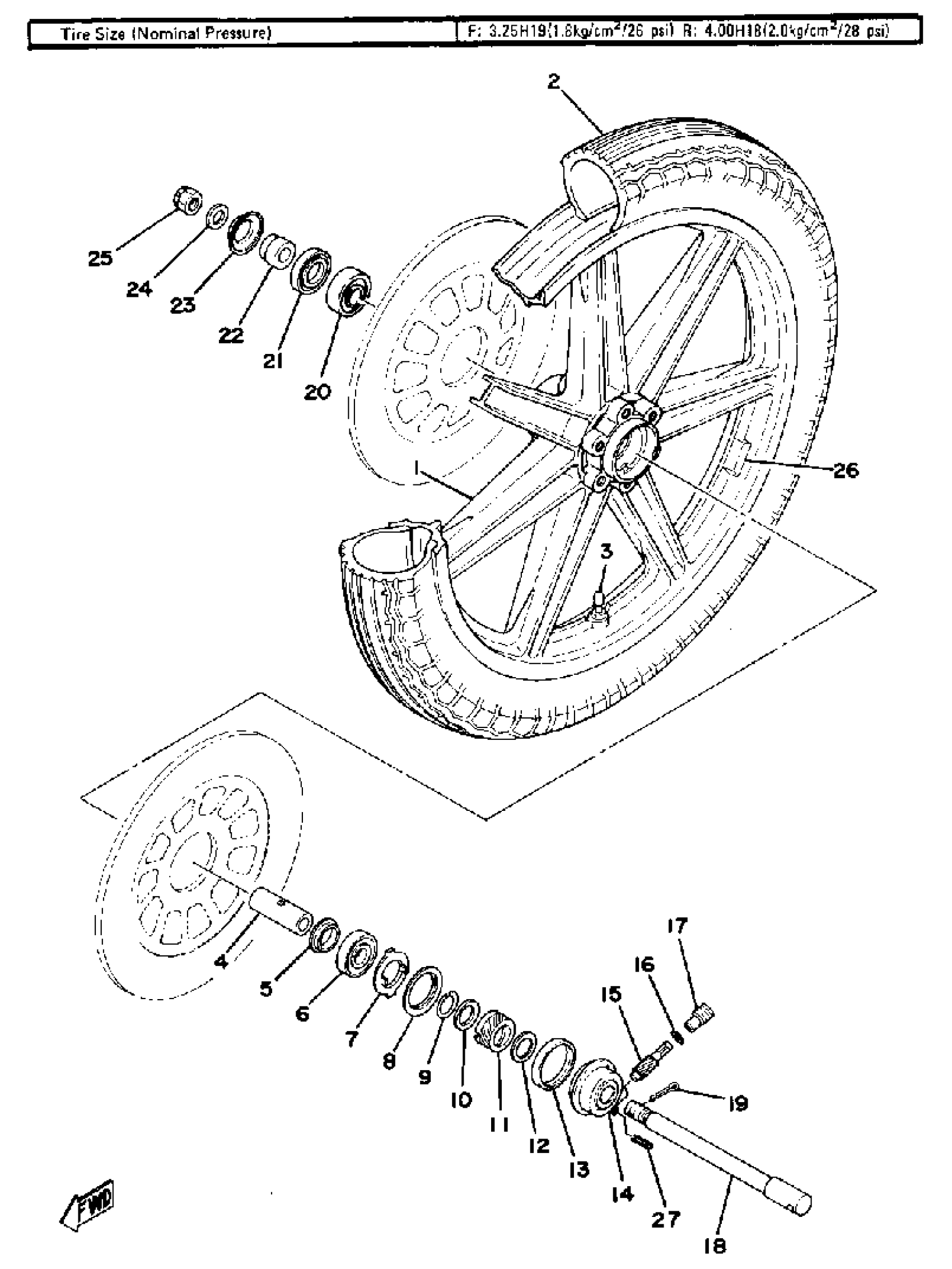 Yamaha XS750F (XS750) 1979 FRONT WHEEL Diagram