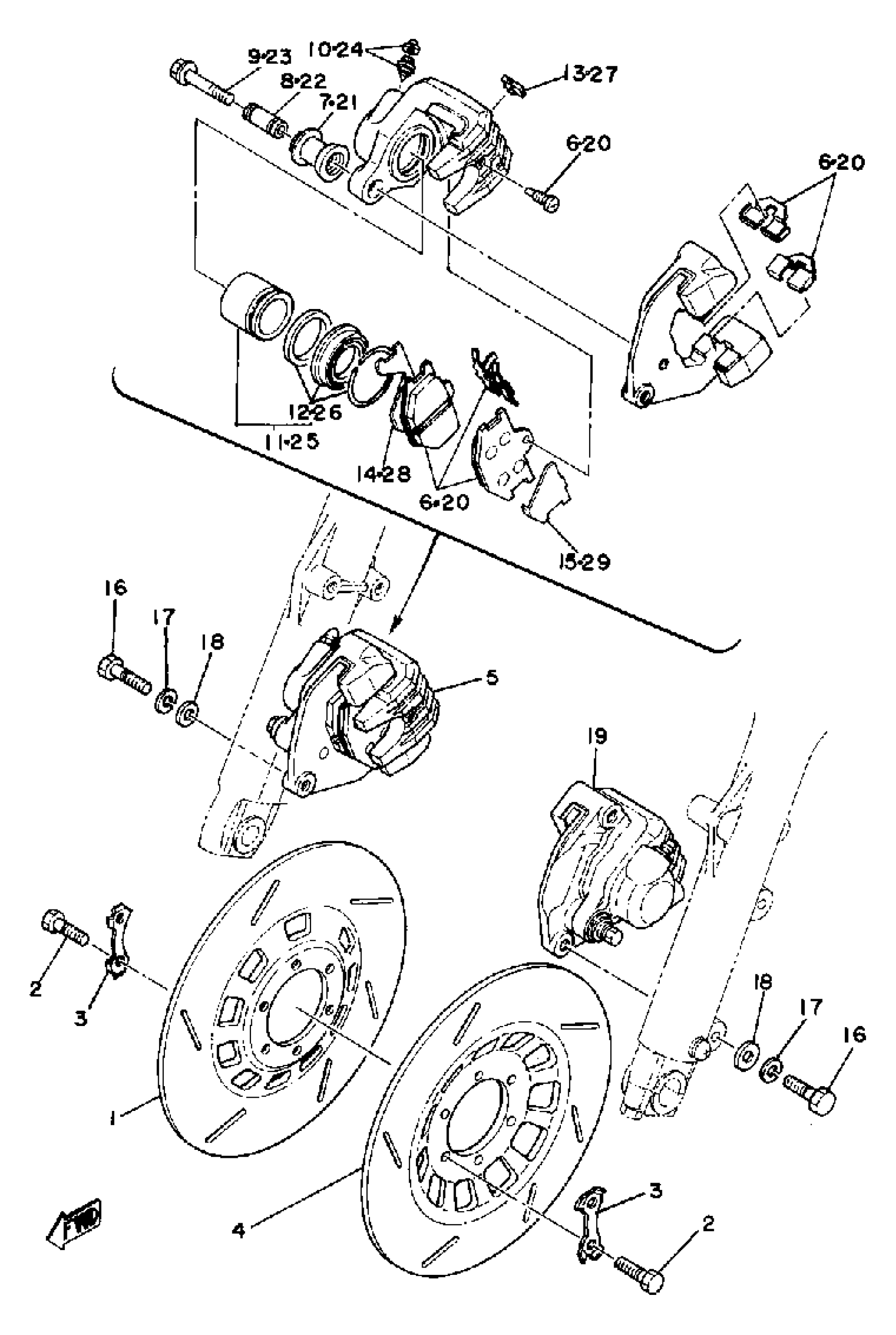 Yamaha XS850H (XS850) 1981 FRONT BRAKE CALIPER Diagram
