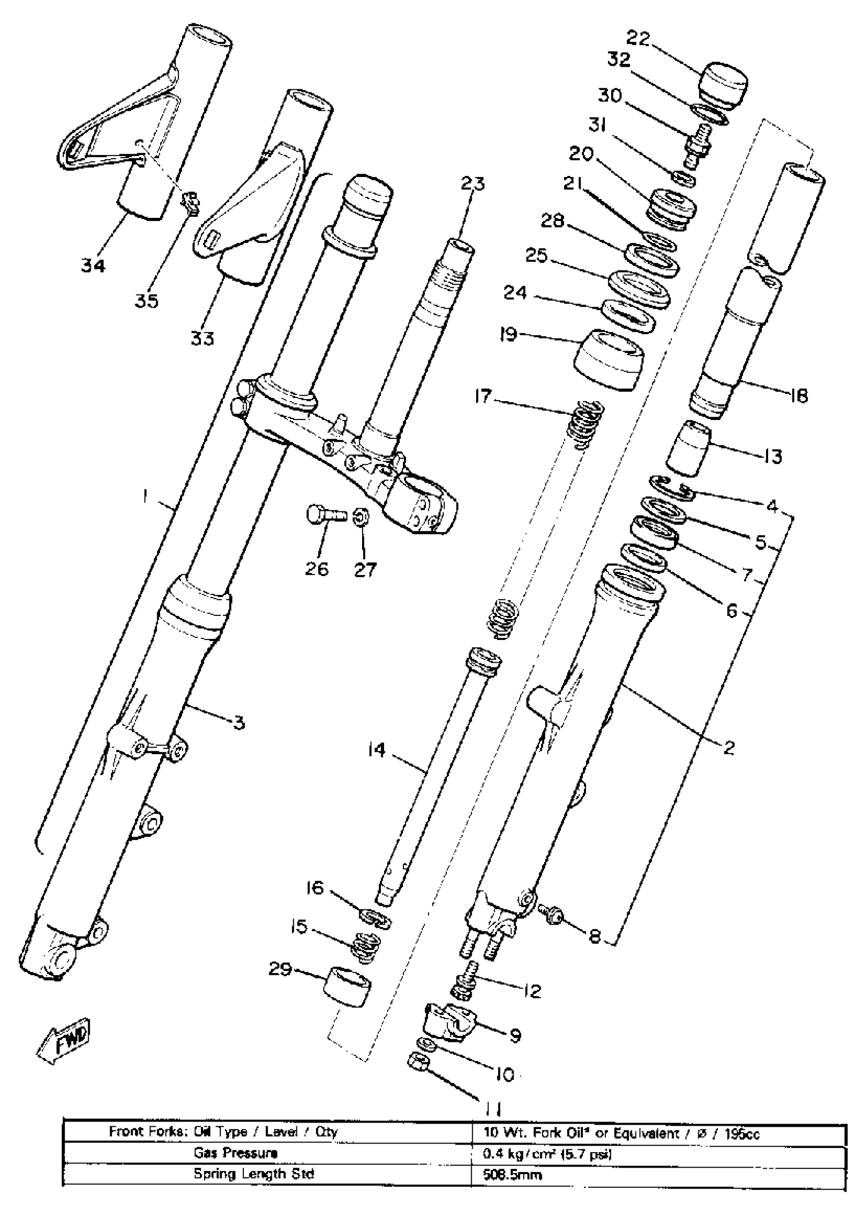 Yamaha XS850H (XS850) 1981 FRONT FORK Diagram