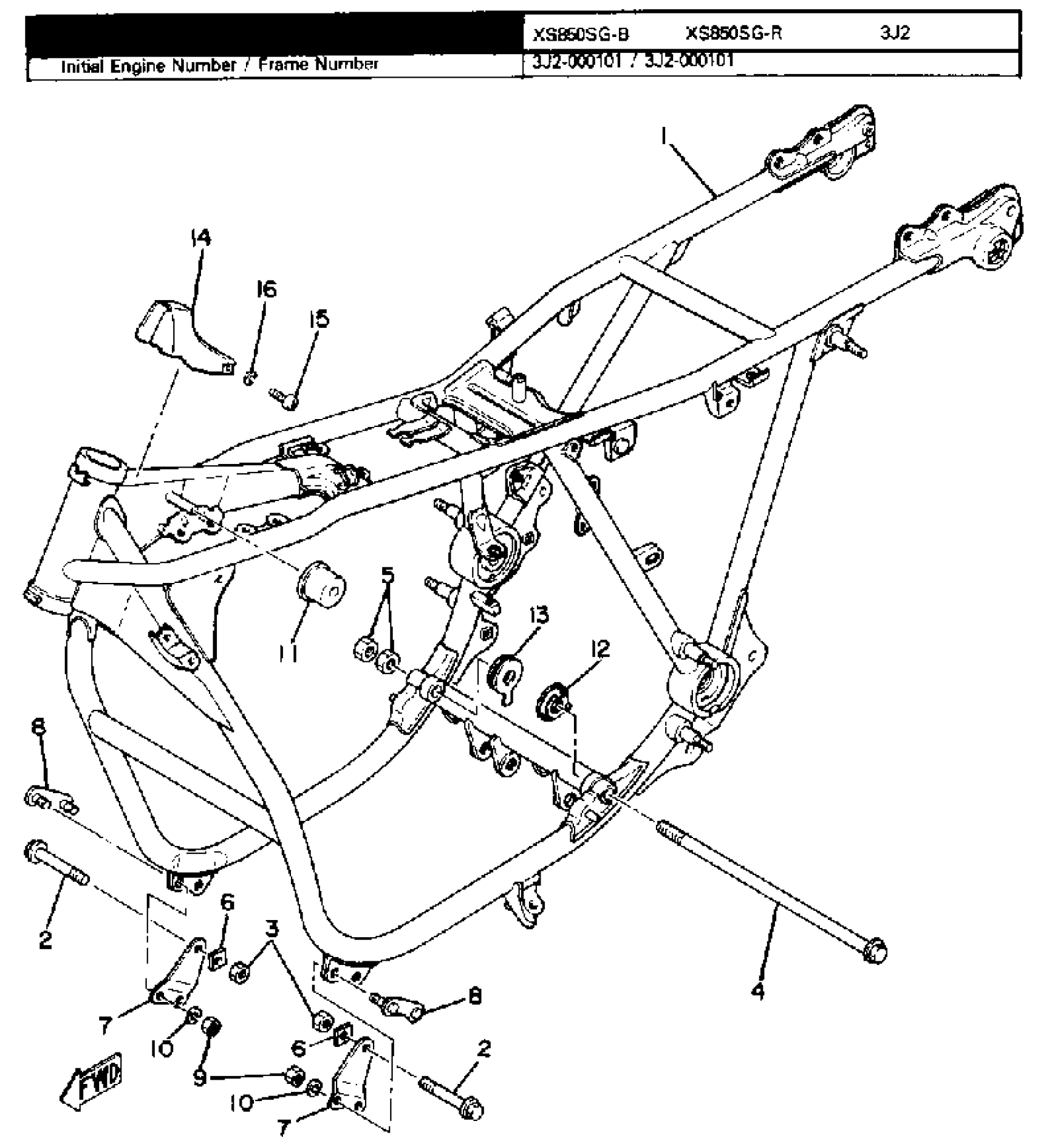 Yamaha XS850SG (XS850S) 1980 FRAME Diagram