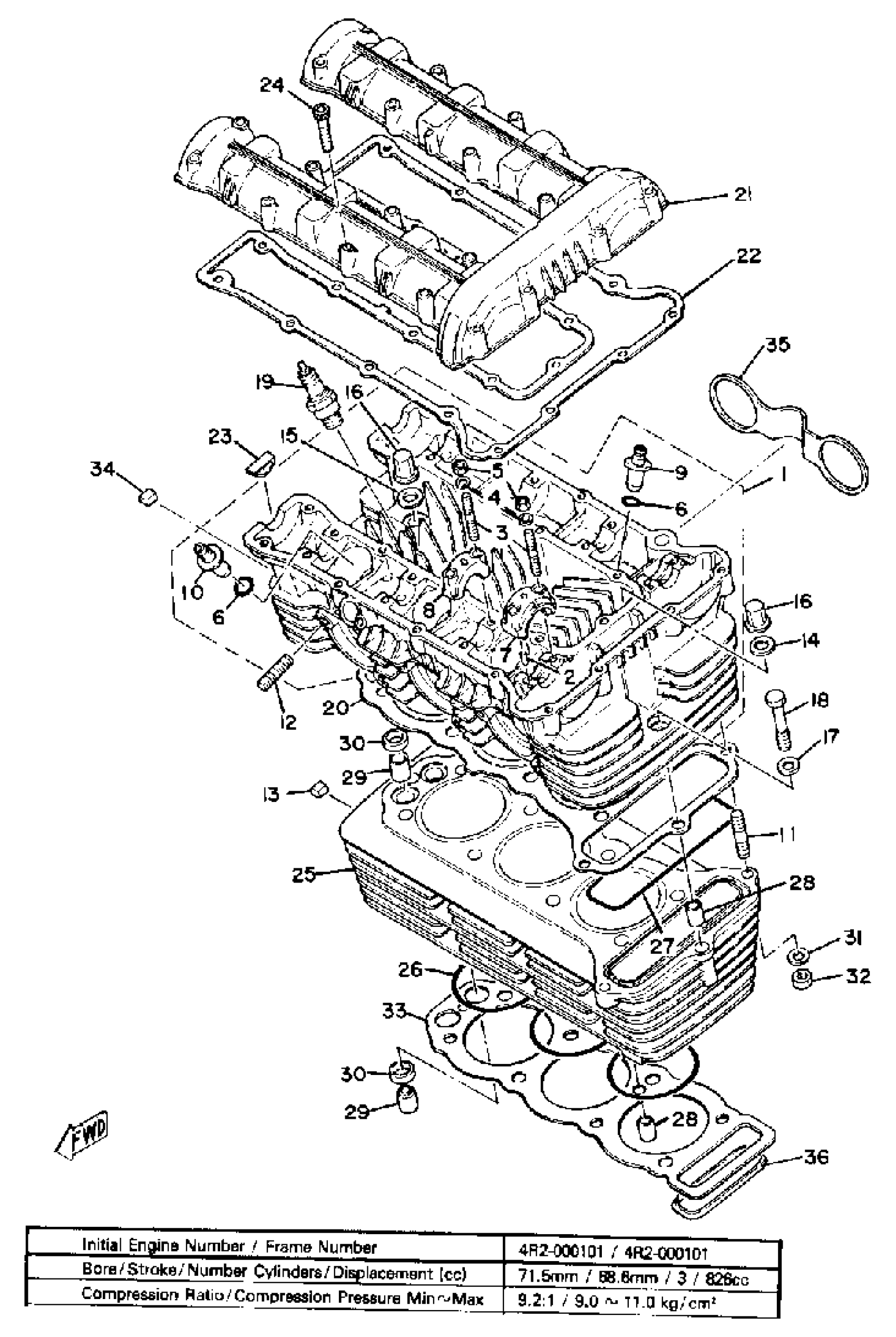 Yamaha XS850SH (XS850S) 1981 CYLINDER HEAD CYLINDER Diagram